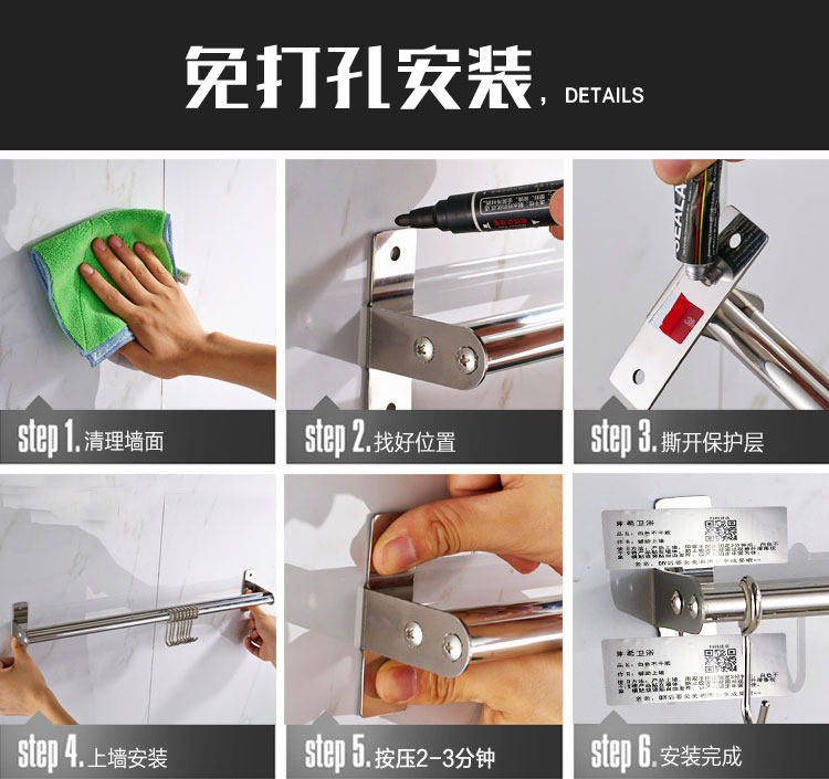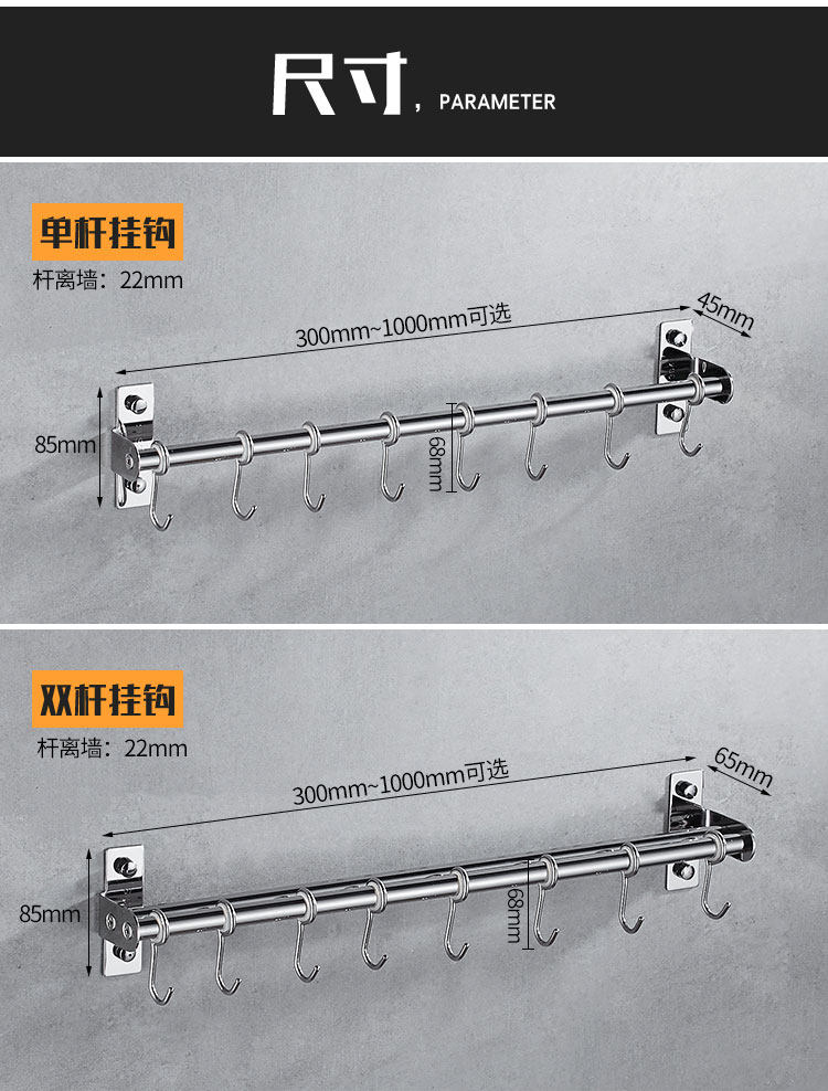 Моенская стойка без отверстий 304 из нержавеющей стали подвесная стойка для стержня, кухонный крючок хранилище