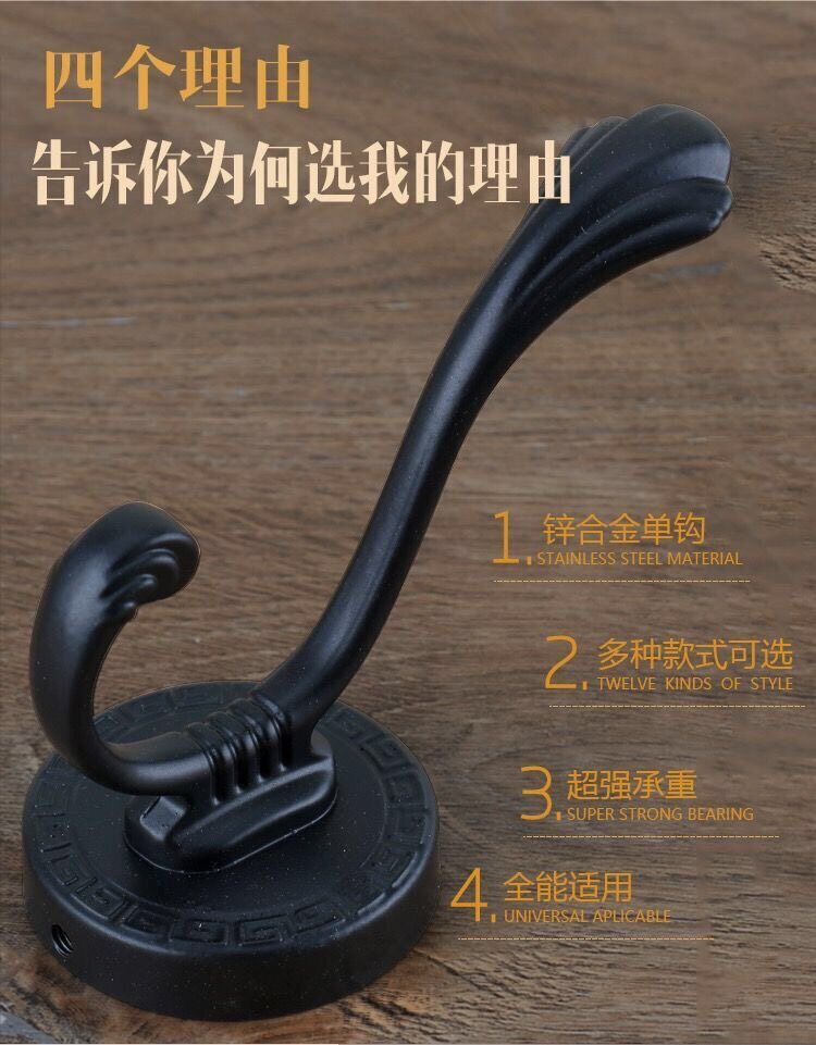 Без отверстия -Бесплатная стена клей черная висящая одежда для двери крюк крюк с твердый для одиночной одежды крюк крюк шкаф шкаф шкаф