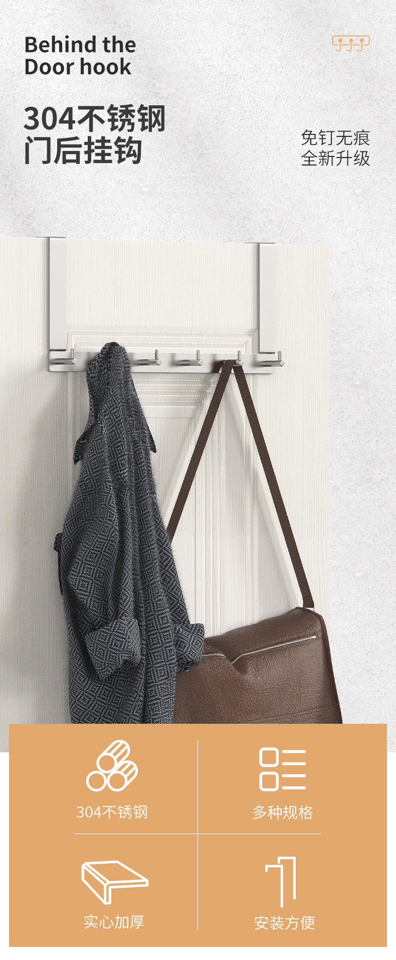 Дверная дверь спальни зацепила дверь и зацепите крючок, крючок, крючок, без трассировки 304 из нержавеющей стали без обратной двери -безвесо