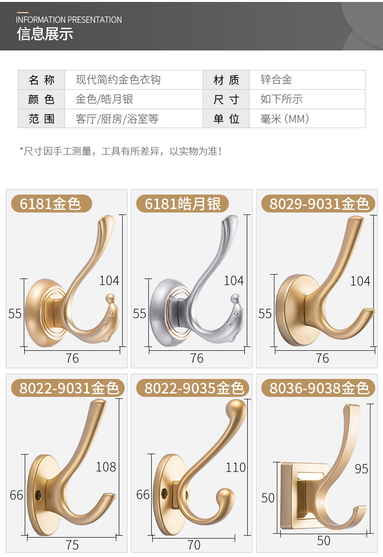 Fo Amoy Shoe Cabine Крюк крюк крюк на стене стена, висящая одежда, без утонченная одно металлическая золотая тестирование крюк крючок крючок