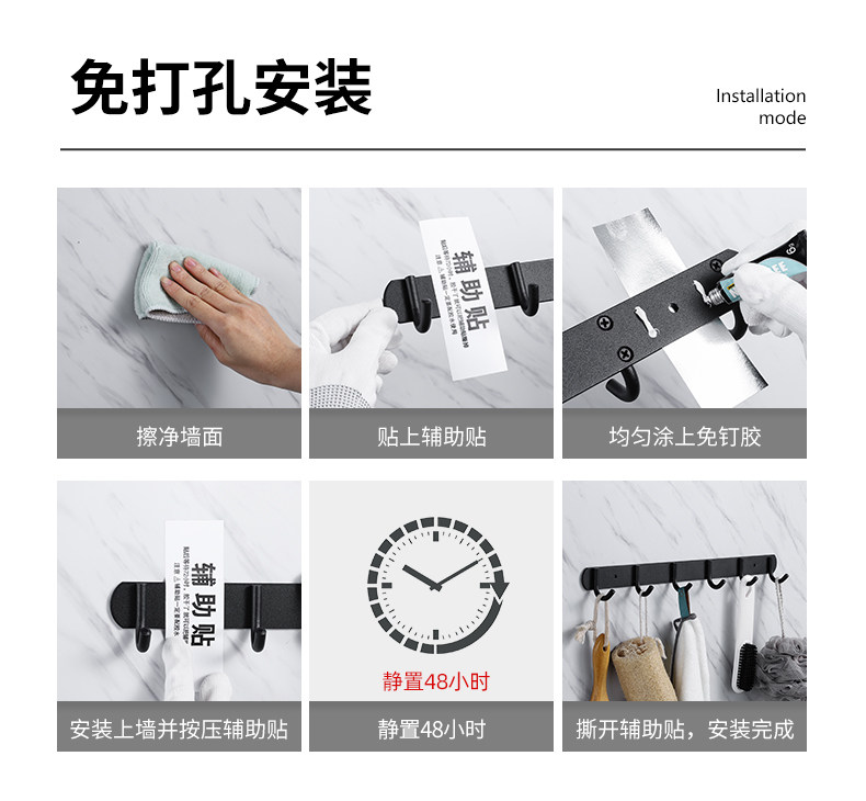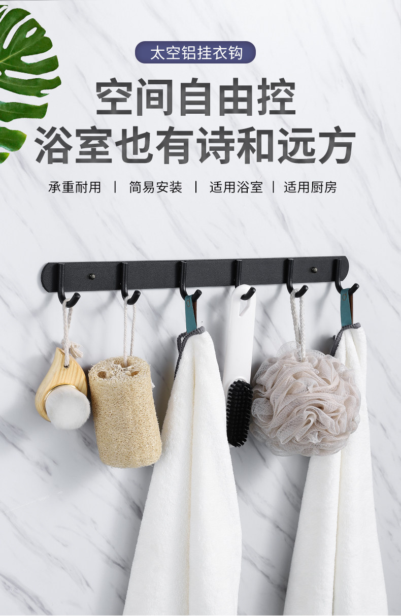 Черная крючка стена висящая вешалка пространство алюминиевая кухня ванная комната подвесные полотенца Бесплатные настенные настенные крючки на стене