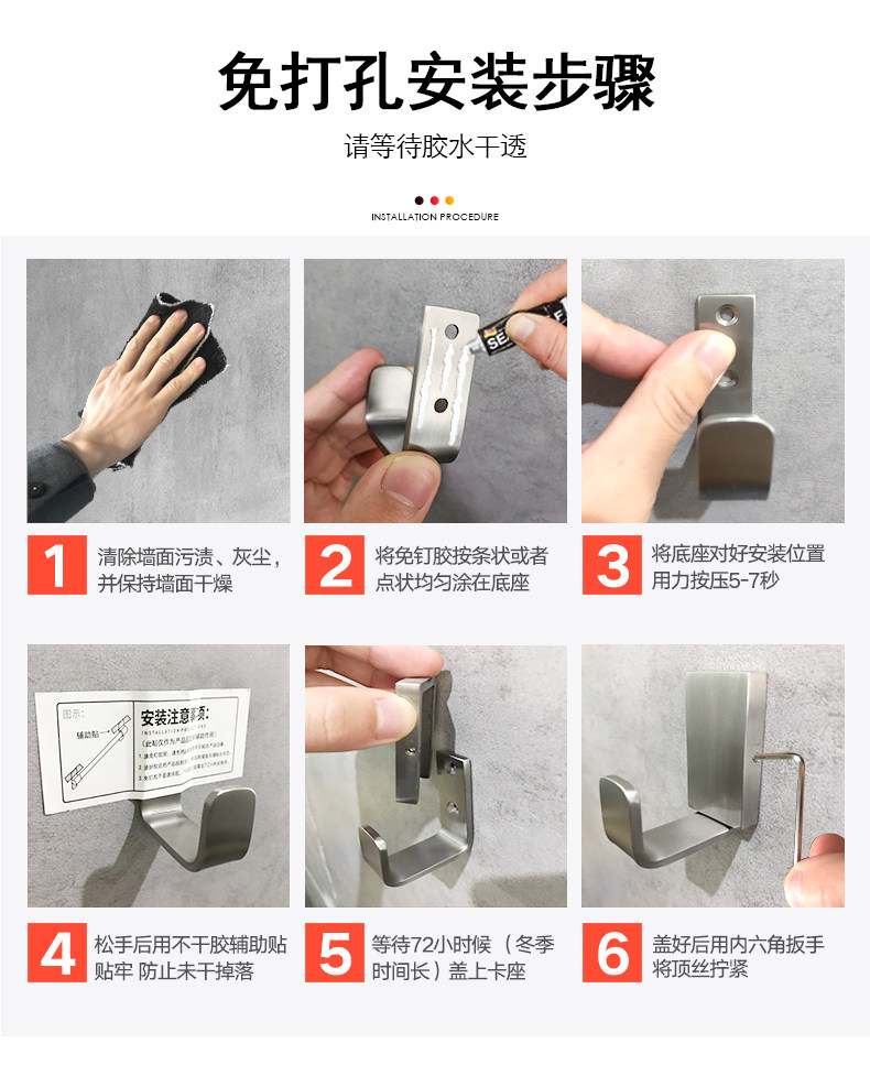 Крючок для одежды без перфорации, нержавеющая сталь 304, одинарная дверь в ванную комнату, клейкий крючок для пальто и шляпы, крючок для полотенца в дамской комнате