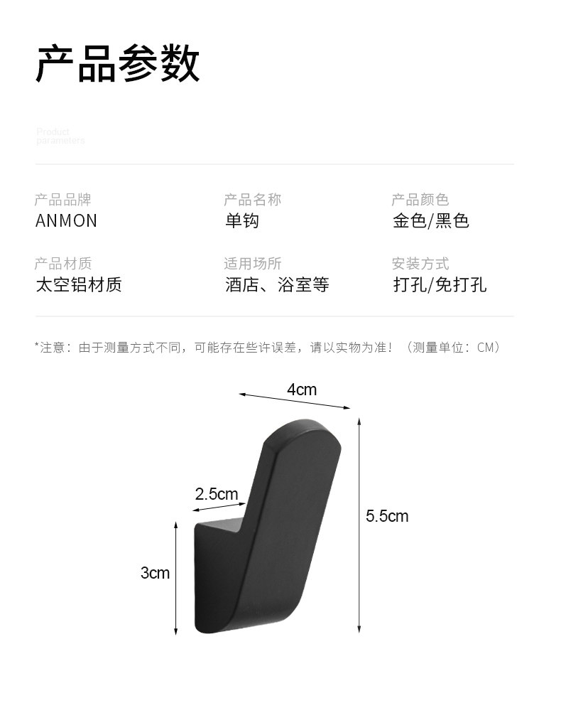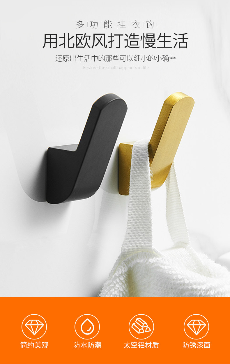 Без отверстия черное одно крючное пространство алюминиевый крючок крюк для одежды стена крючок -настенная стена на стене