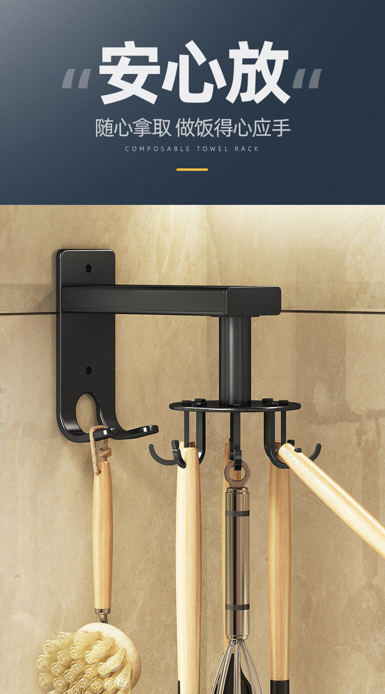 Космический алюминиевый кухонный крючок без удара может повернуть висящую шпатель лопат лопат лопат лопат лопат лопатка кухонная стойка.