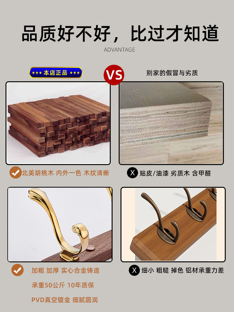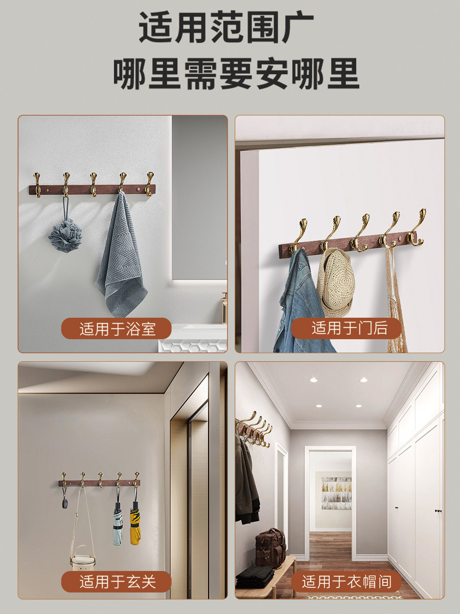 Крюк из ореховых деревянных крючков на стене спальни находится в дверь в дверь, чтобы войти в веранную деревянную одежду Золотую крюк