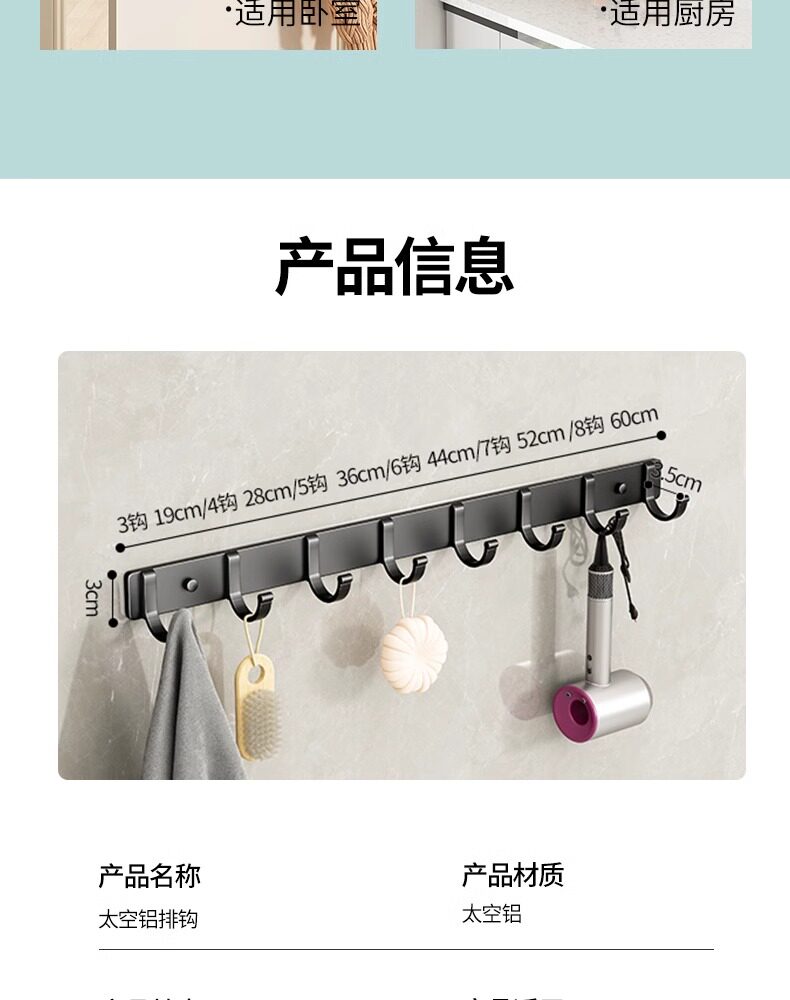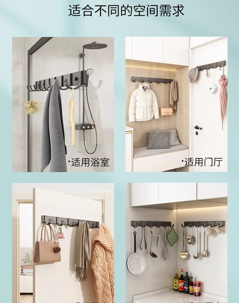 Освобожденная обручальная крючка Сильная клея Пространственная алюминиевая стена на стене подвесная ванная комната ванная дверь ванной за крючком
