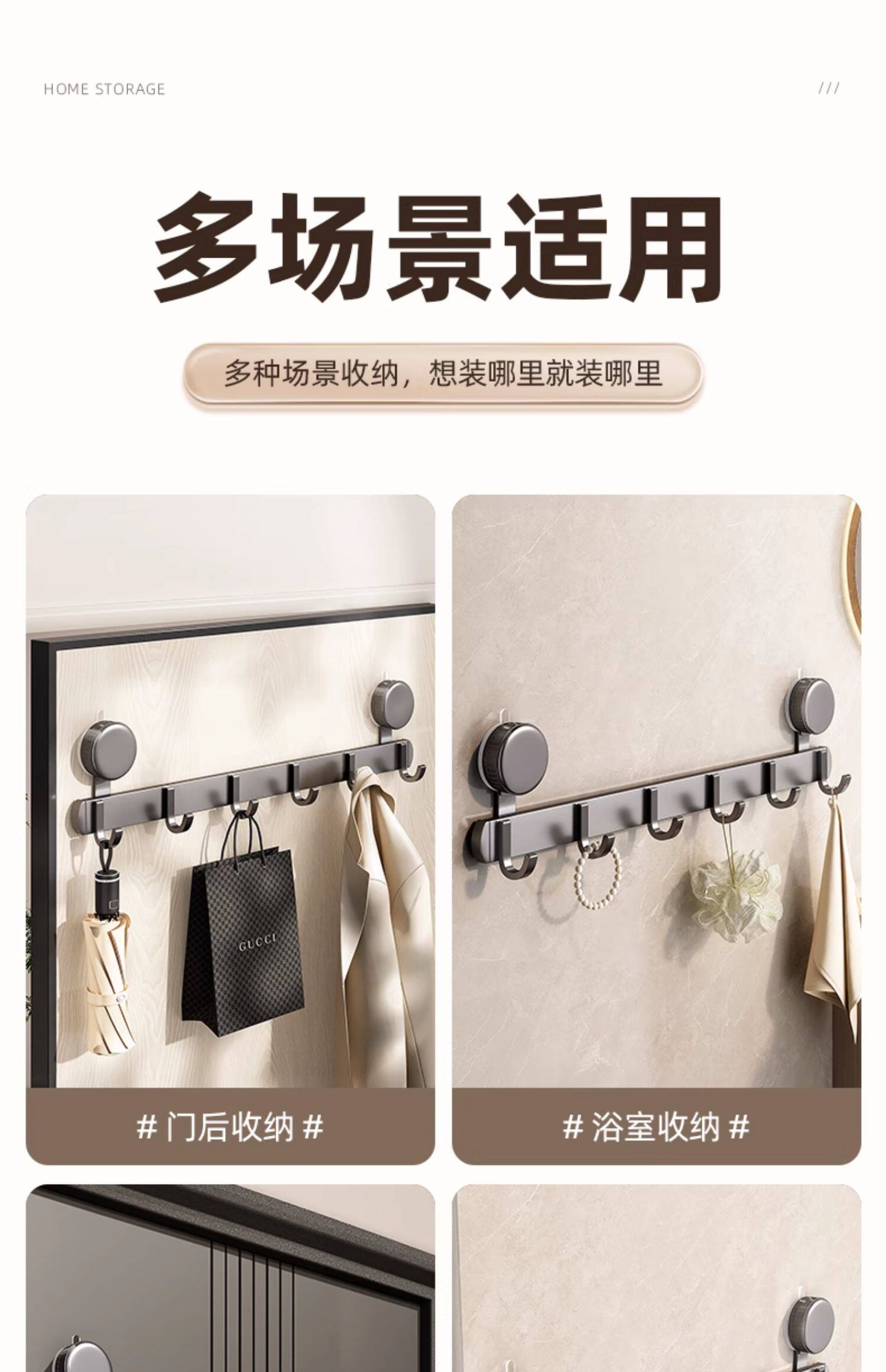 优勤 Вешалка для полотенец на присоске для ванной комнаты, крючок для ванной комнаты, настенный подвесной ряд прочных несущих крючков для входной двери без ударов