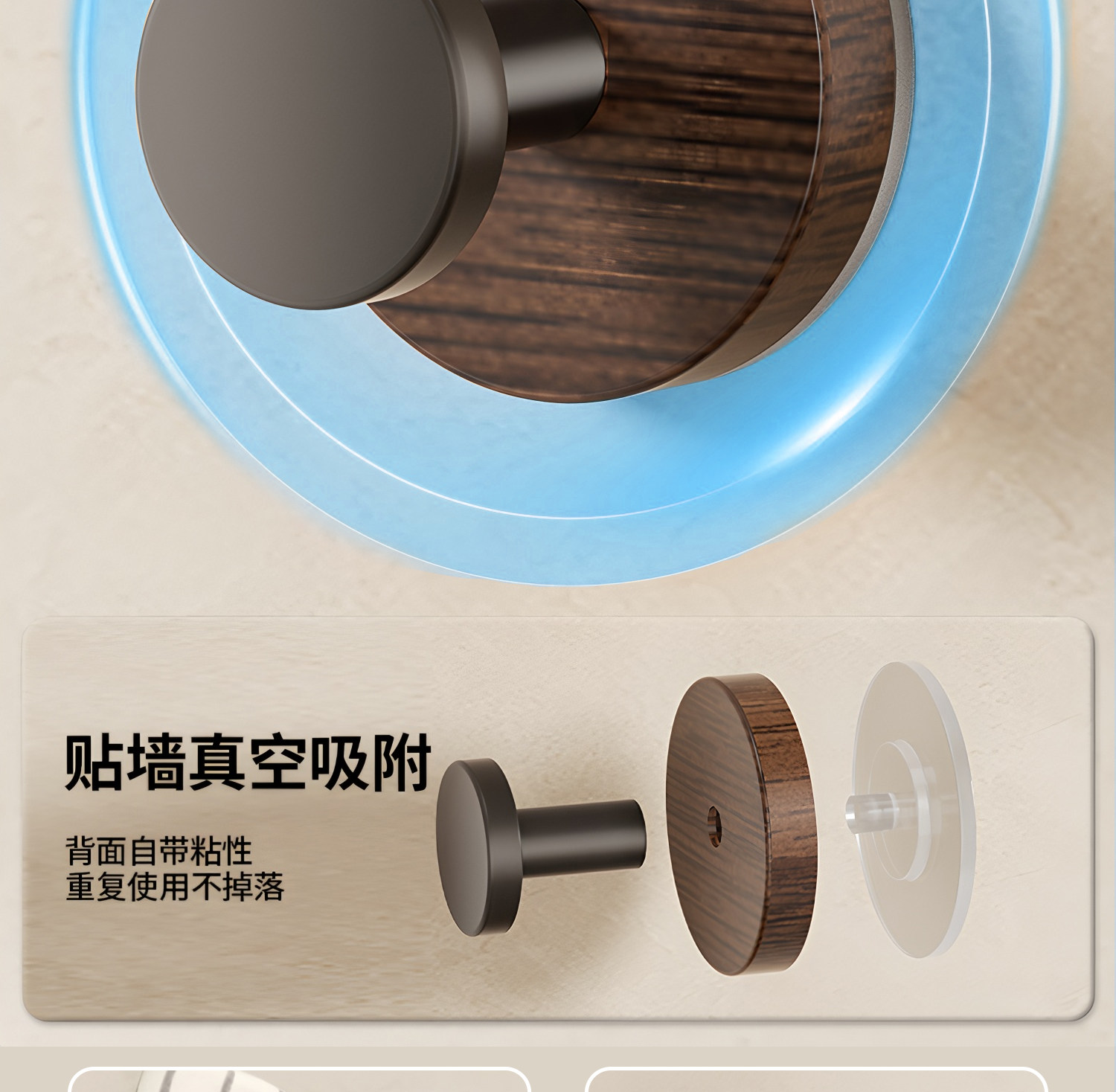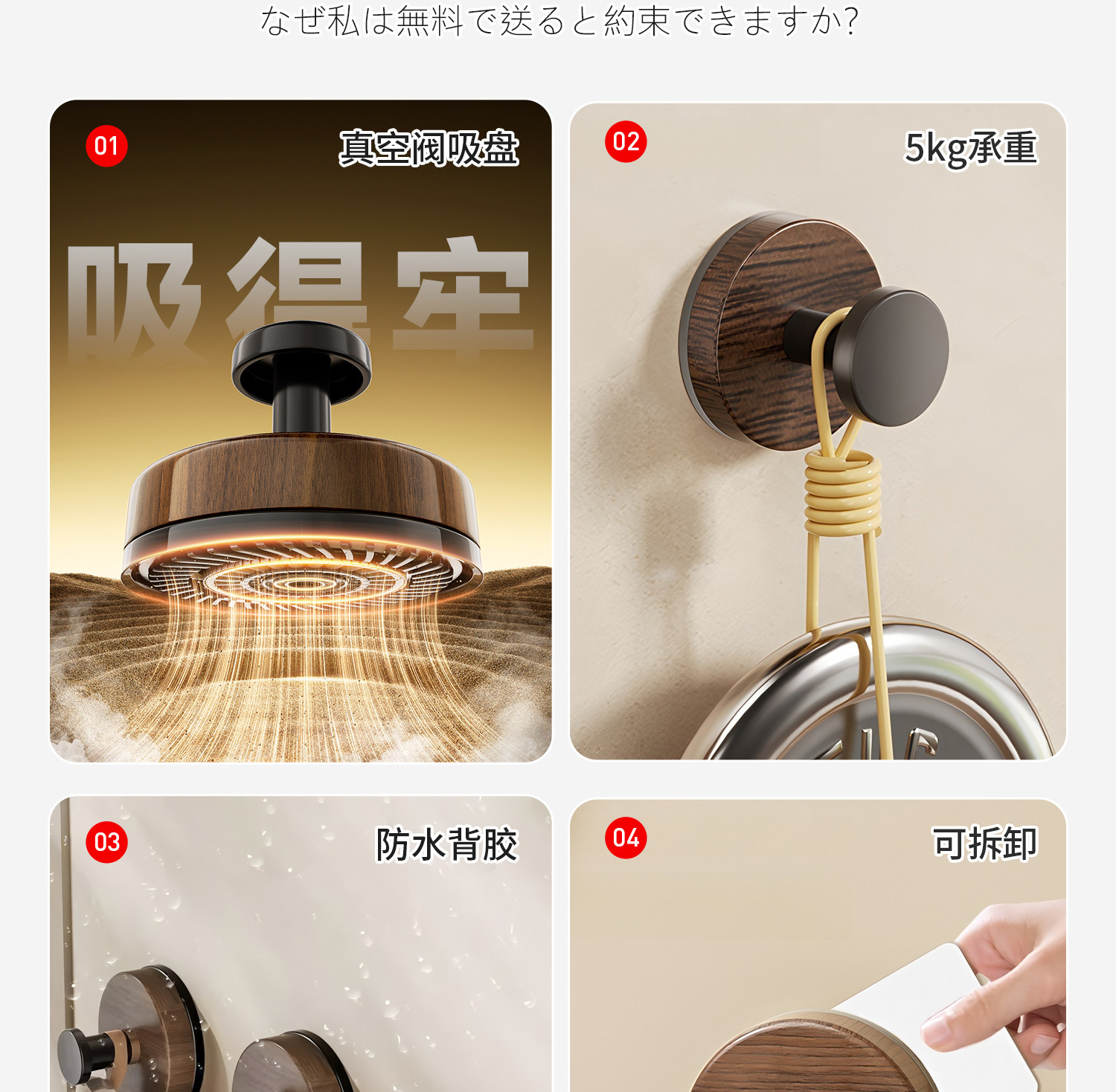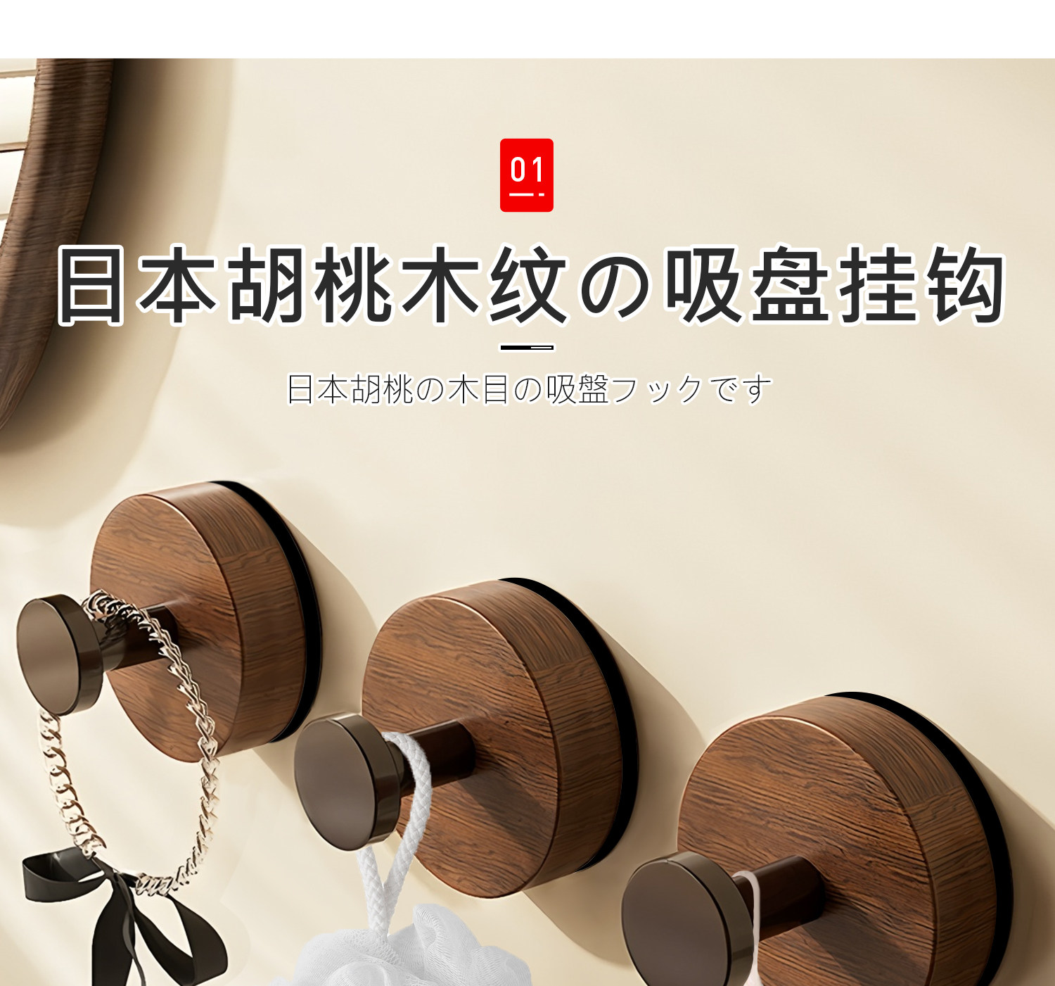 Японский крючок без дырокола, прочная несущая вакуумная присоска, клейкий ореховый бесшовный крючок для кухни, ванной комнаты, стены