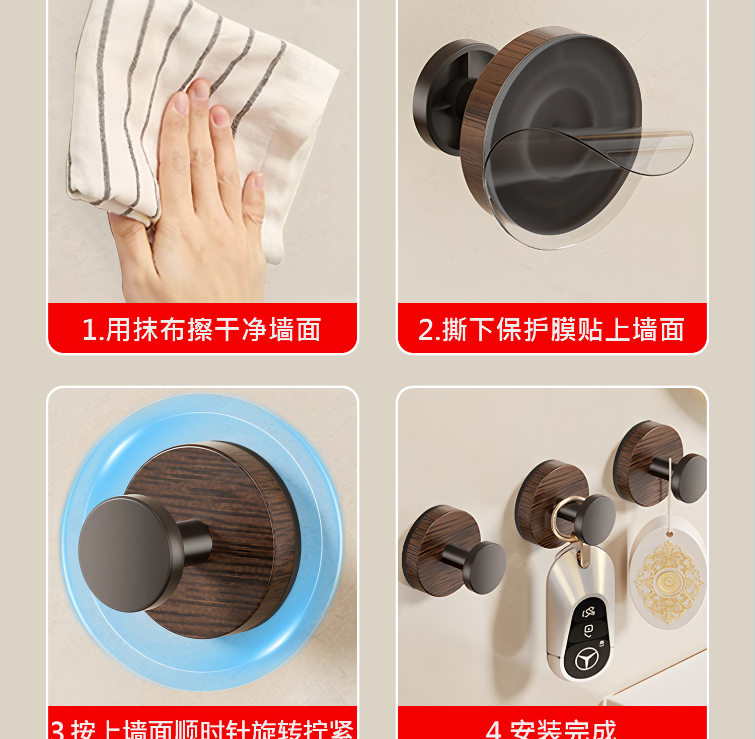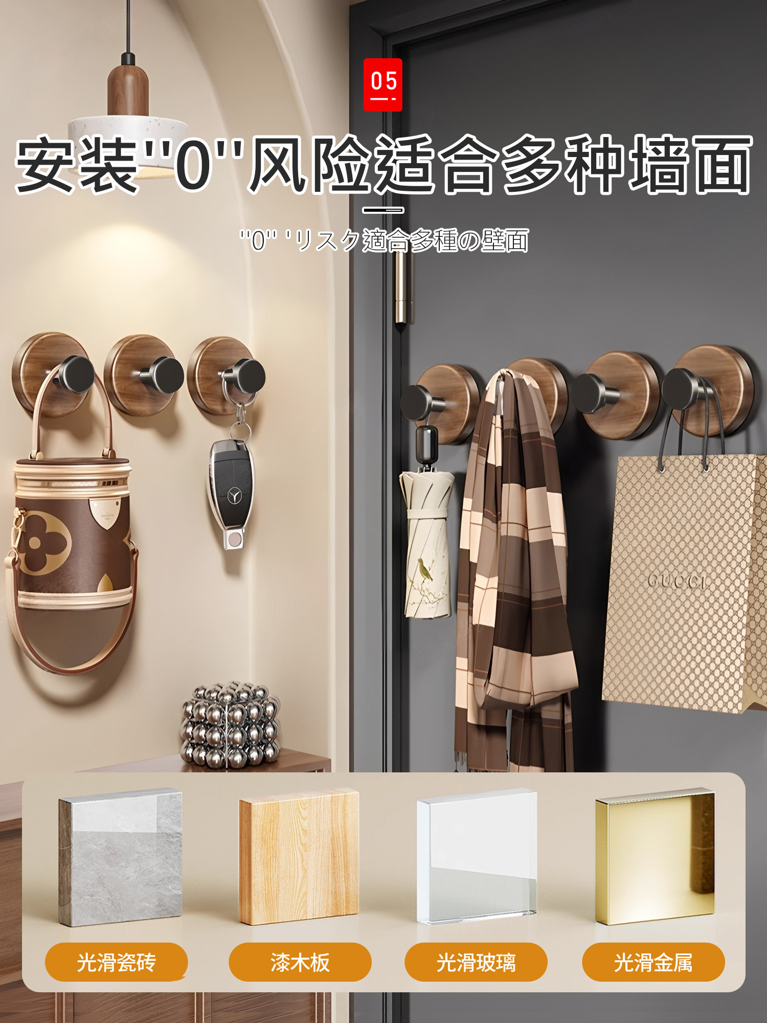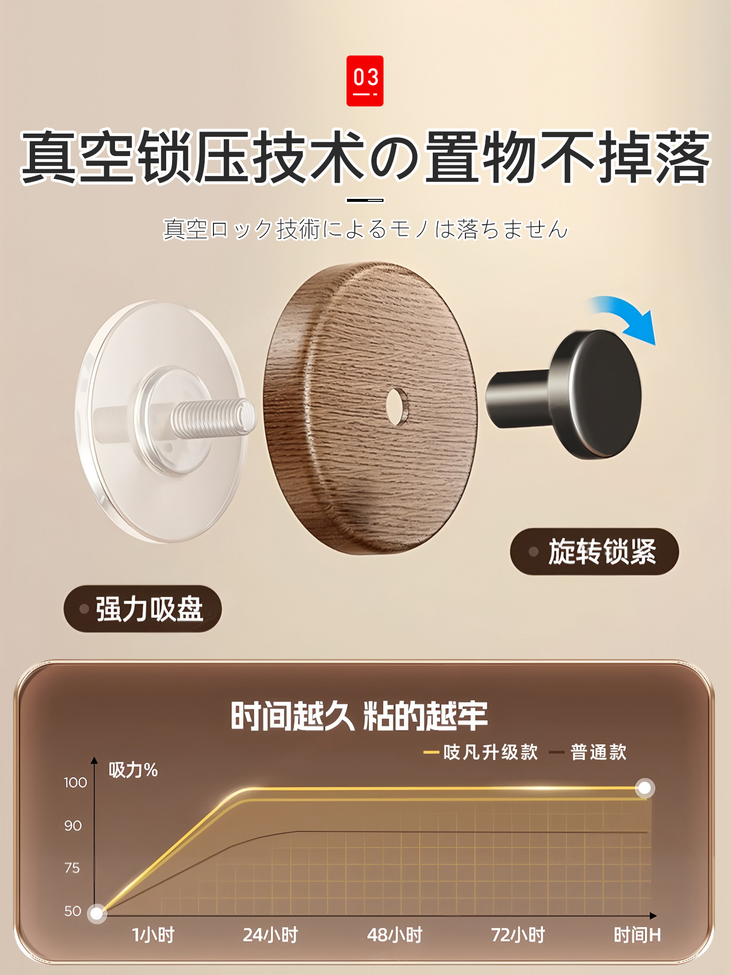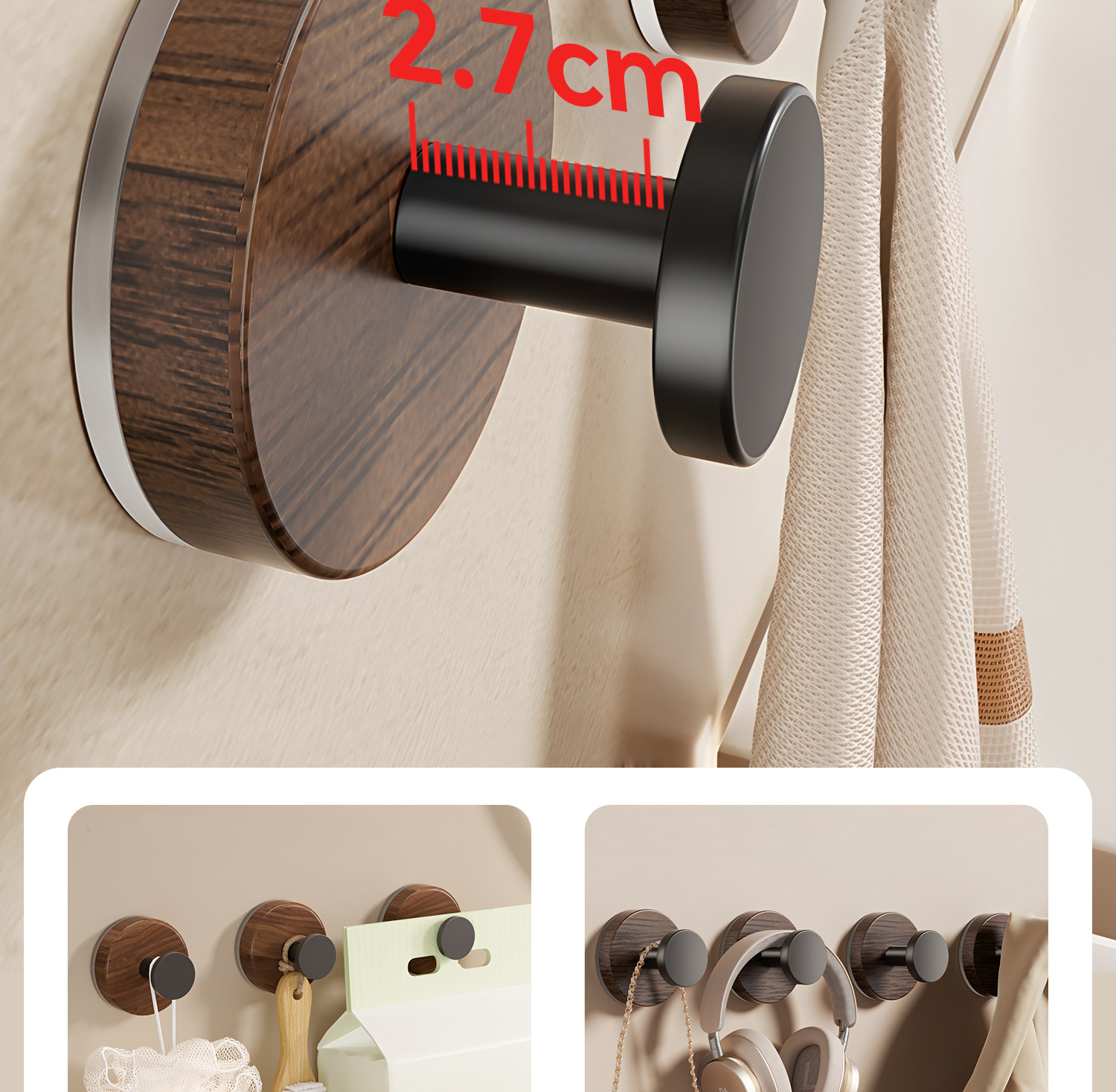Японский крючок без дырокола, прочная несущая вакуумная присоска, клейкий ореховый бесшовный крючок для кухни, ванной комнаты, стены