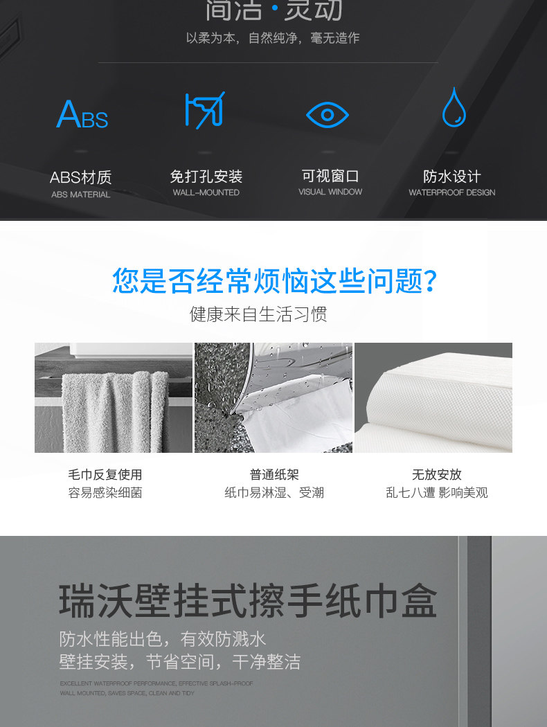 Ruiwo освобождает от ручной одежды бумажная коробка ткани для ванной комнаты кухонная картонная полка может прилипать к туалетной коробке в стиле стены