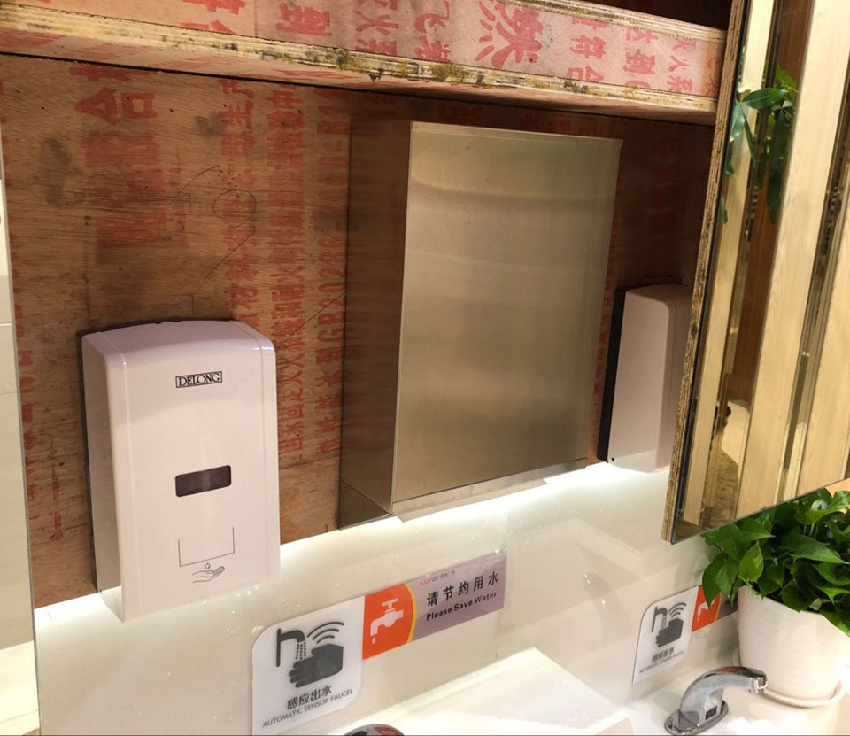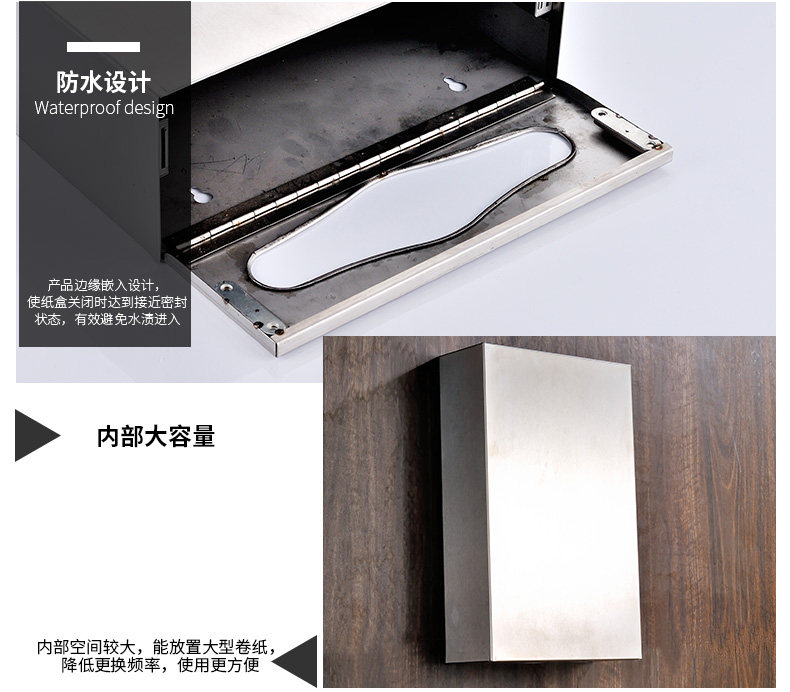 304 Зеркало после вытирания туалетного туалетного зеркала для бумажного полотенца после скрытой спрятанной темно -нагруженной ручной бумажной полки из нержавеющей стали