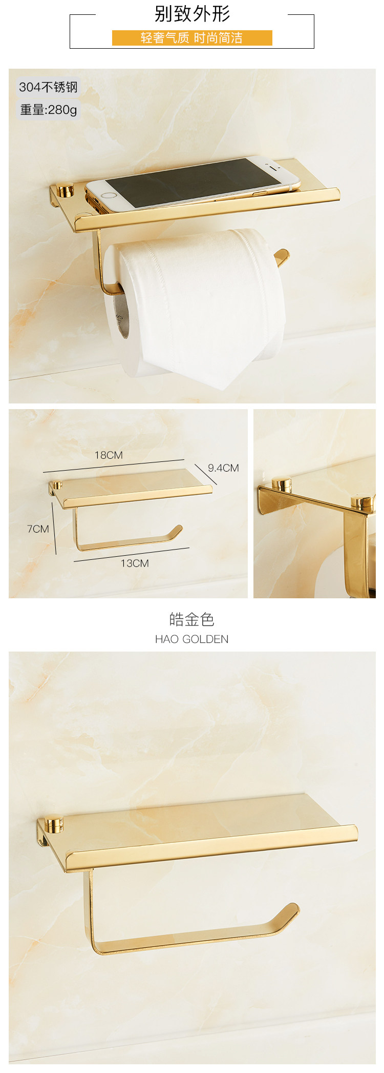 Туалетная бумажная коробка полотенца с золотистыми стальным стальным