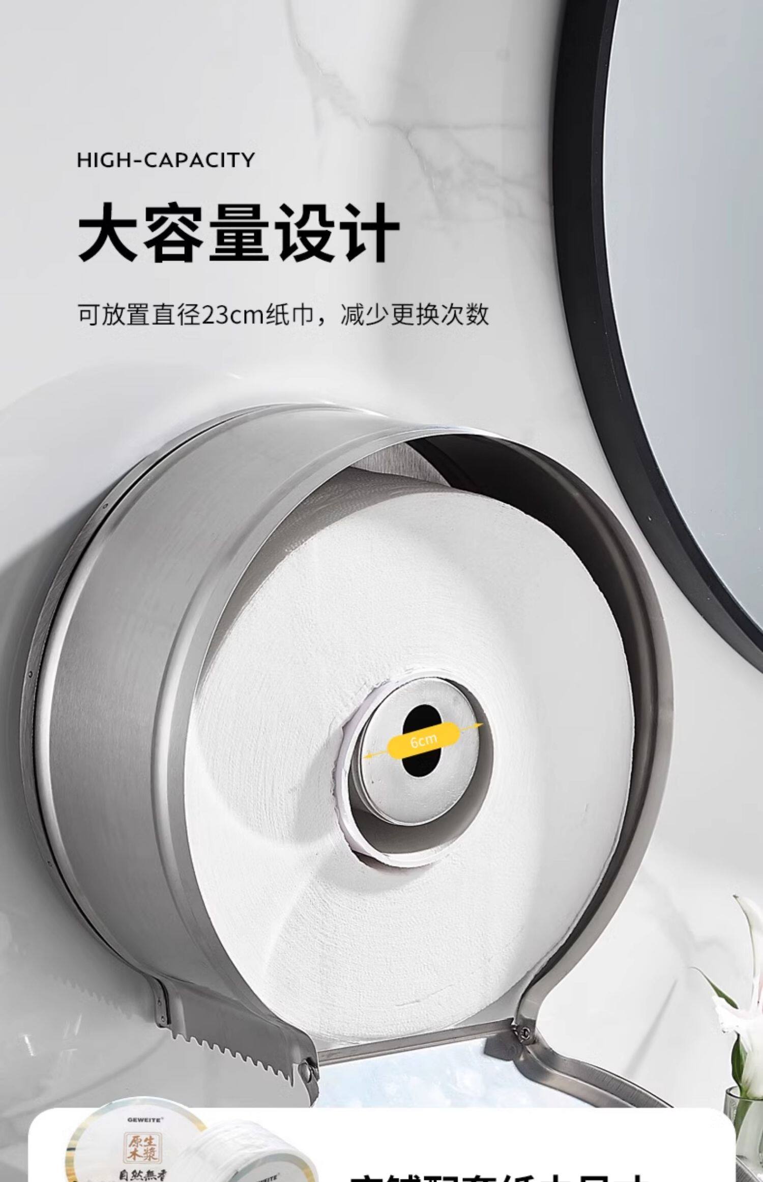 Санитарная нержавеющая сталь Большая катящая бумага Рама туалетная бумага большая рулона бумажная коробка ванная комната бумажные полотенца, стена ванной комнаты с большой пластиной коробкой для бумаги