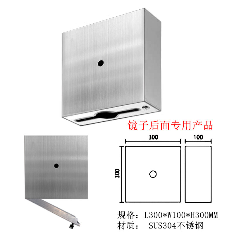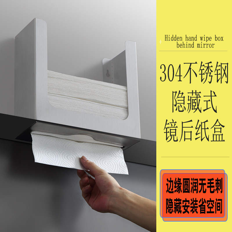 S304 Зеркало из нержавеющей стали за бумажной коробкой Ванной Ванная Скрытая ручная коммерческая картонная коммерческая коробка с скрытой ткани встроена