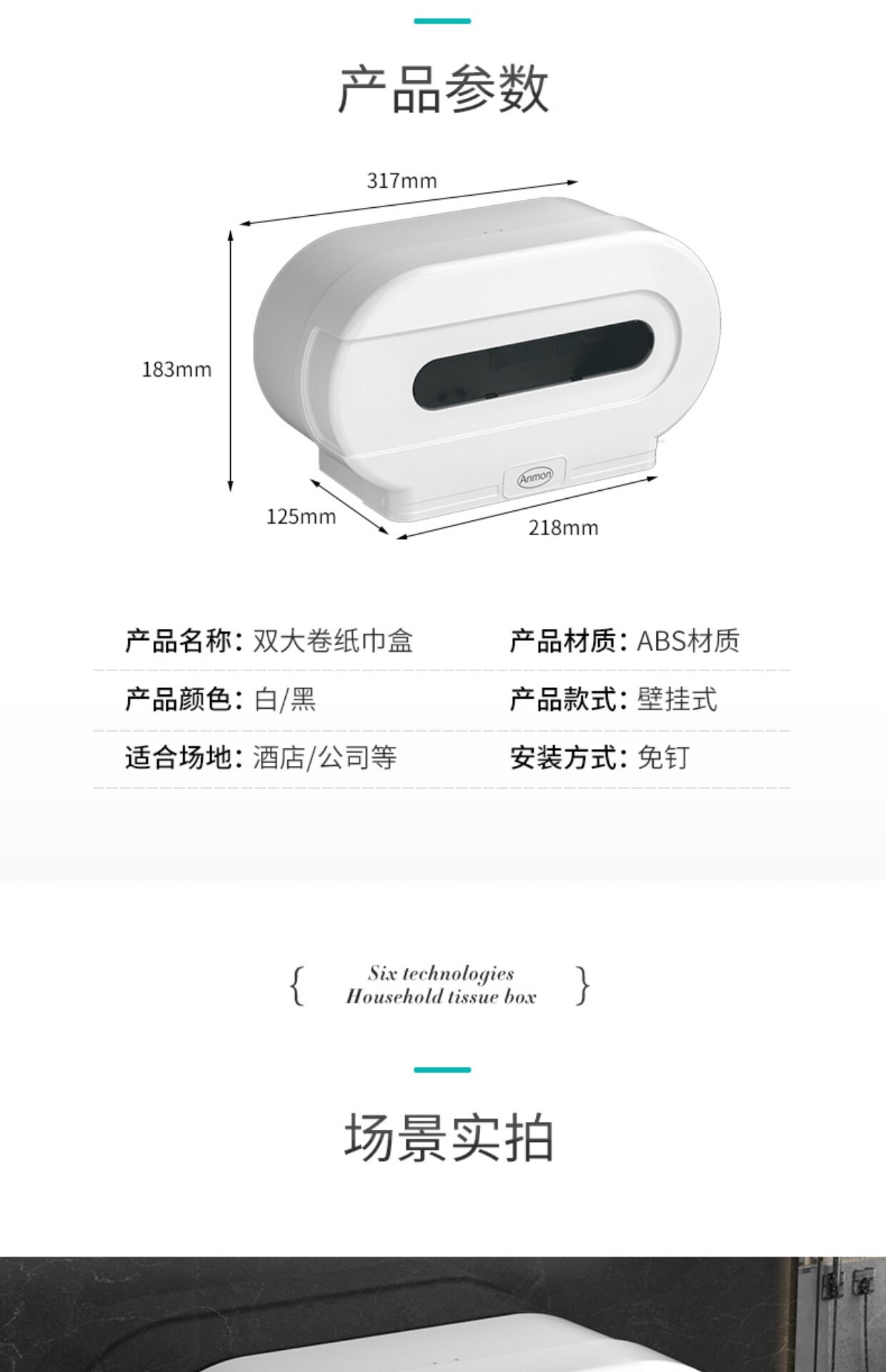 Anmon Туалетная двойная стойка для бумажных полотенец. Небольшая раскатывающая коробка может быть установлена с двумя рулонами коммерческого двойного бумажного