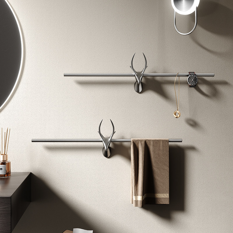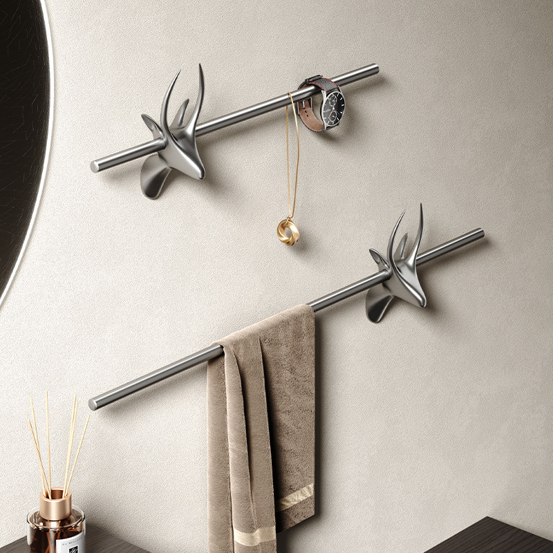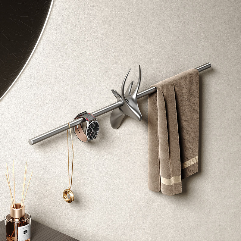 Серо -серого развращенная голова оленя с движущимися полотенцами на стены полотенца на полотенце, ванная комната для хранения туалета подвес