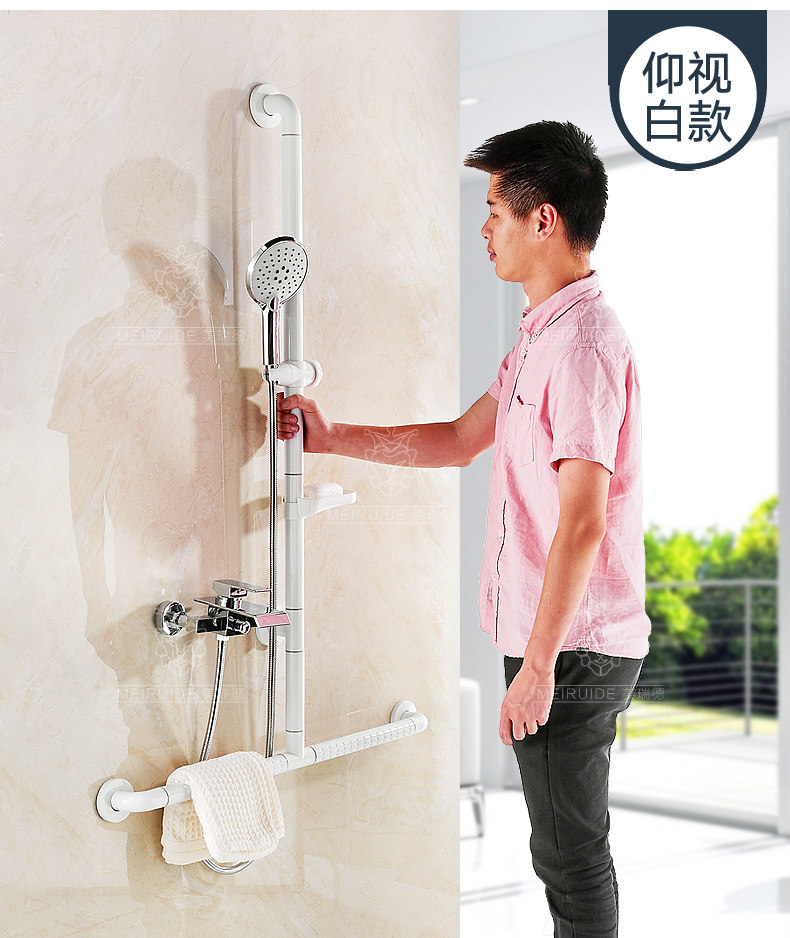 Барьер для душевой комнаты -Без рука с удилища, чтобы помочь стойке T -форме туалетной ванной комнаты безопасная нельперипкая пожилая подлокотники для душа