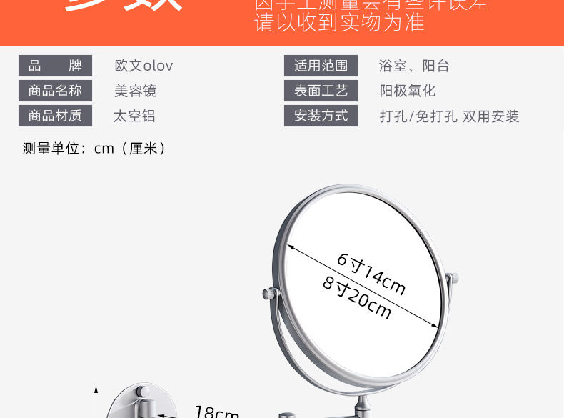 Дональд личный оправданный зеркальный зеркал в ванной комнате зеркало Складывание дома Стена отеля -mid -Anging Want Amplify Двойное зеркало красоты