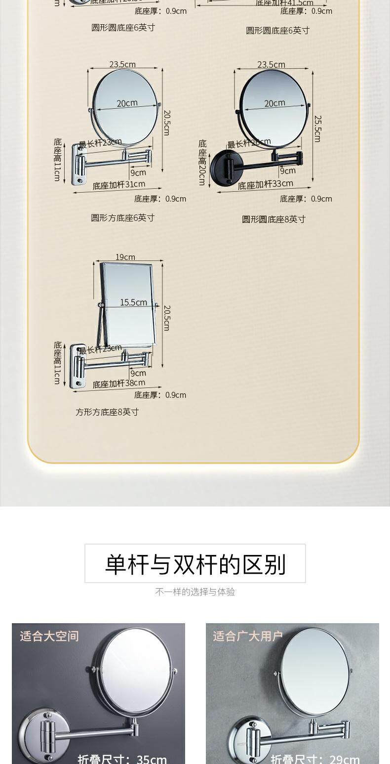 Настенная двусторонная телескопическая складная лупа на стену, зеркало