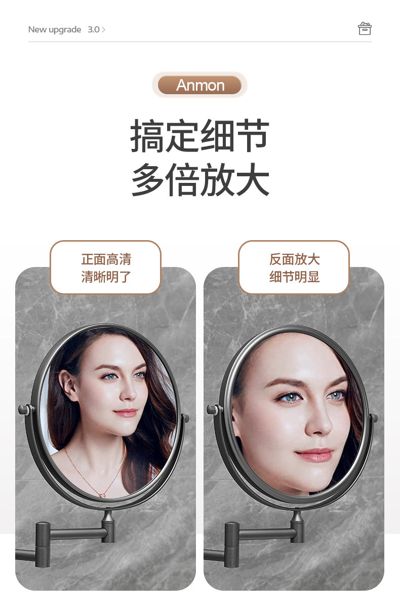 Всасывание чашки для макияжа зеркало отель без пунша складной настенный настенный зеркальный зеркал Регулируемая красавица зеркало