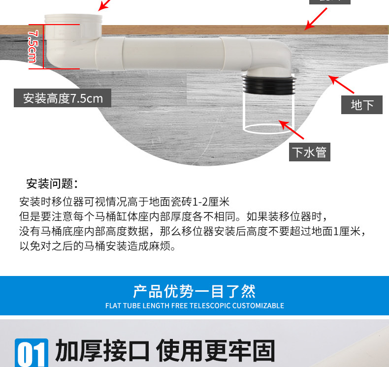 Смещение туалета перекачки, удлиненная и утолщенная плоская труба может быть отрегулирована от приседания для приседания туалетной водопроводной аксессуары.