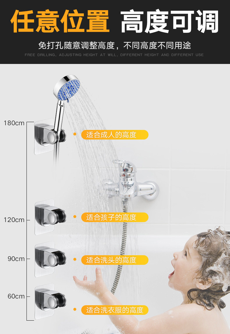 - Космический алюминиевый клейкий кронштейн + душевая труба