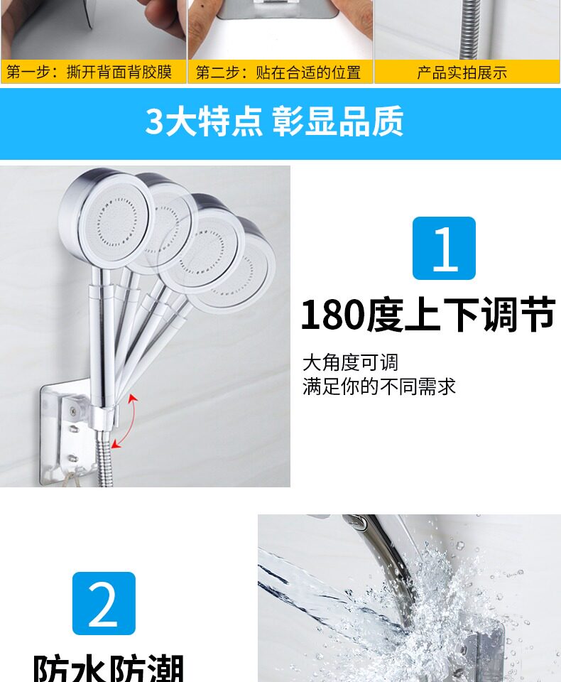 Показать стент без удара в ванной комнате регулируемый душ душ душ спринклер -шланг с фиксированными базовыми душевыми аксессуарами
