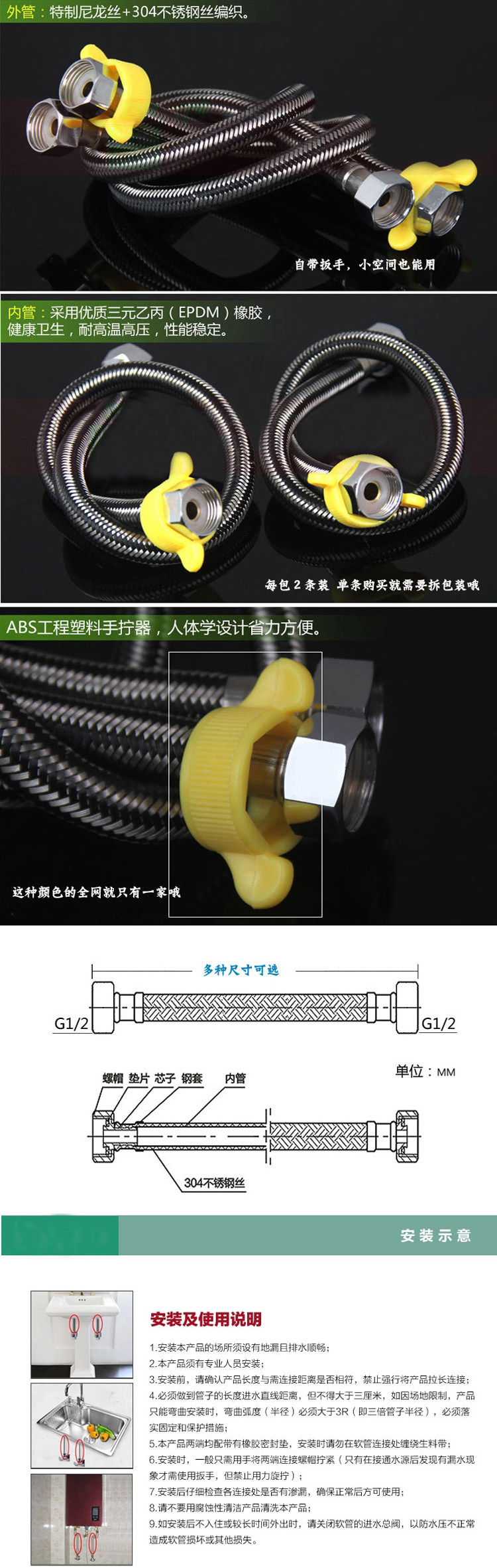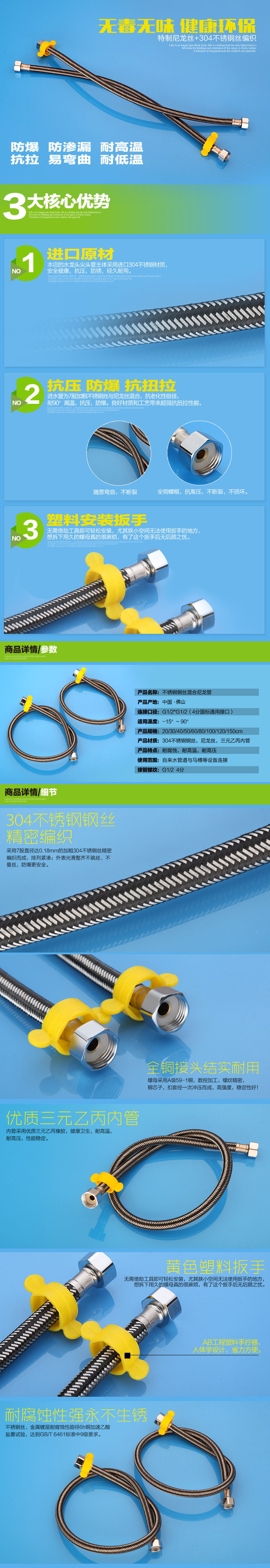 Плетеная горячая и холодная взрывобезопасная внутренняя трубка из нержавеющей стали, туалет, нержавеющая сталь AISI 304