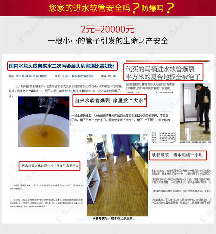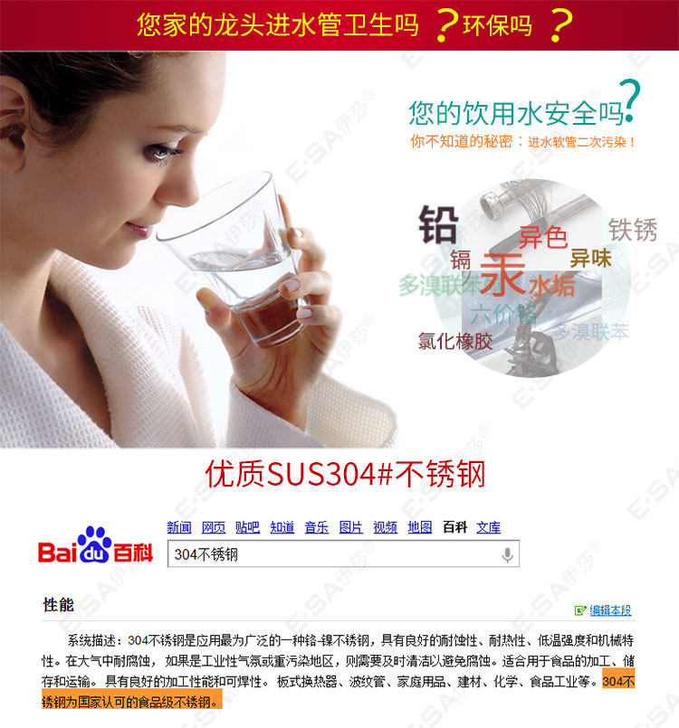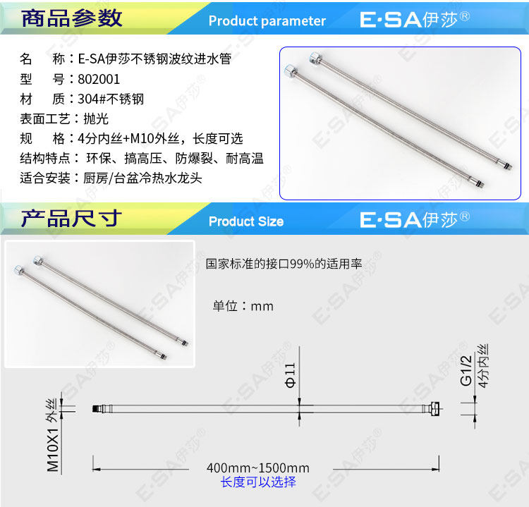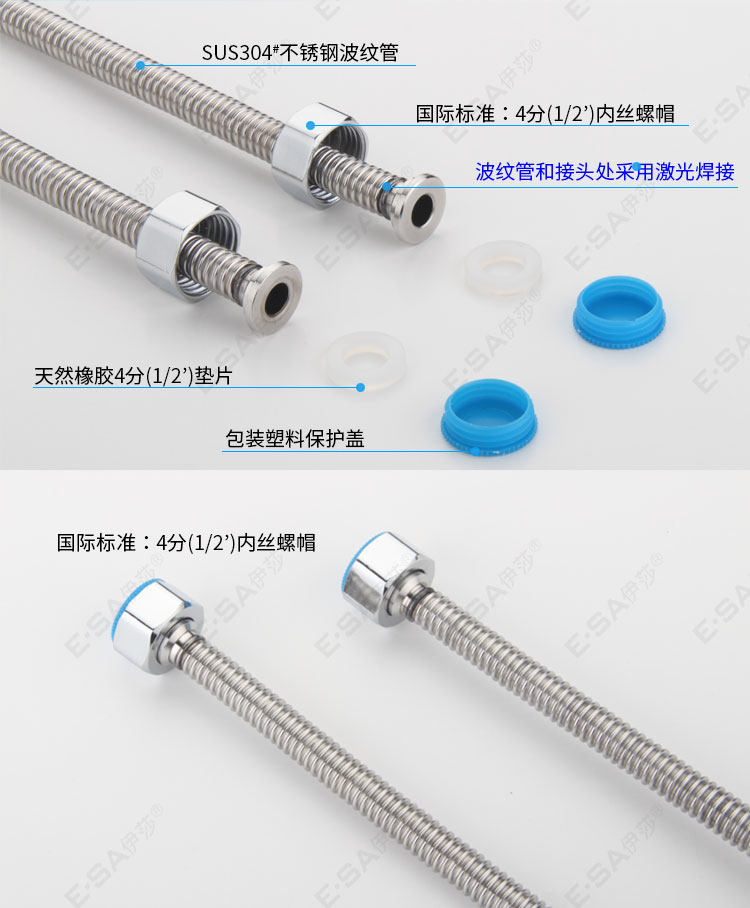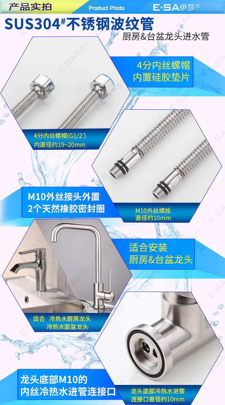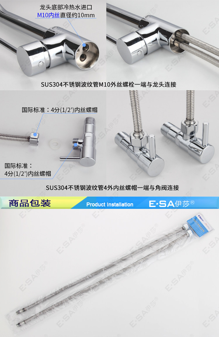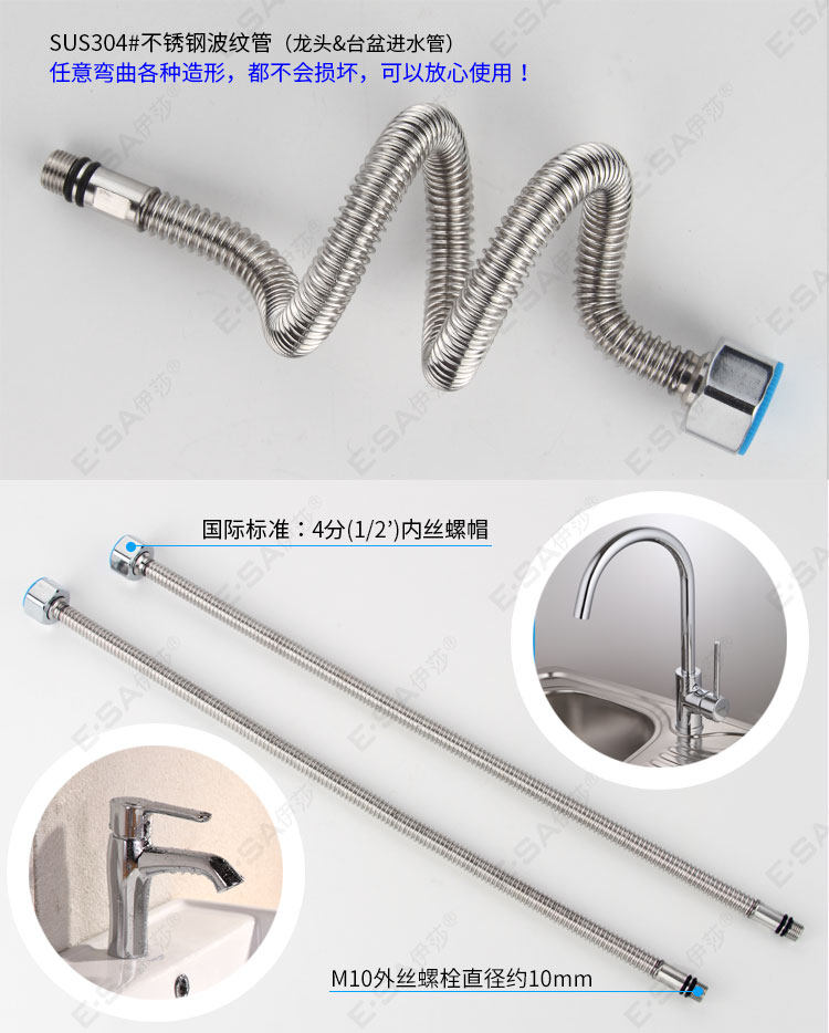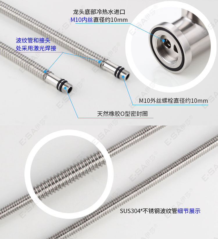 Основное тело из нержавеющей стали:Все металлические трубы из нержавеющей стали избегают старения резиновых труб (традиционные плетеные трубы содержат резину).Подходит для использования на кухне горячих и холодных входных труб.Этот продукт имеет высокое качество.