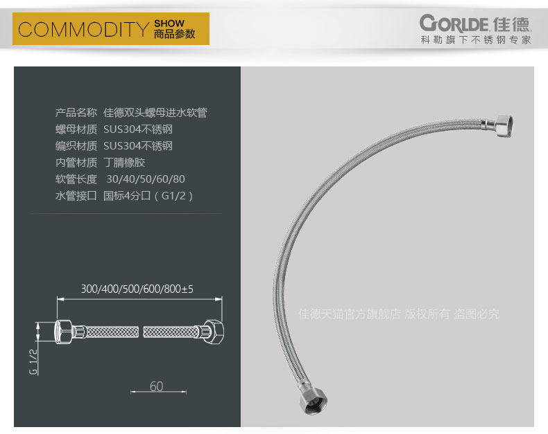 Colejad SUS304 из нержавеющей стали горячая и холодная вода сплетенная шланга