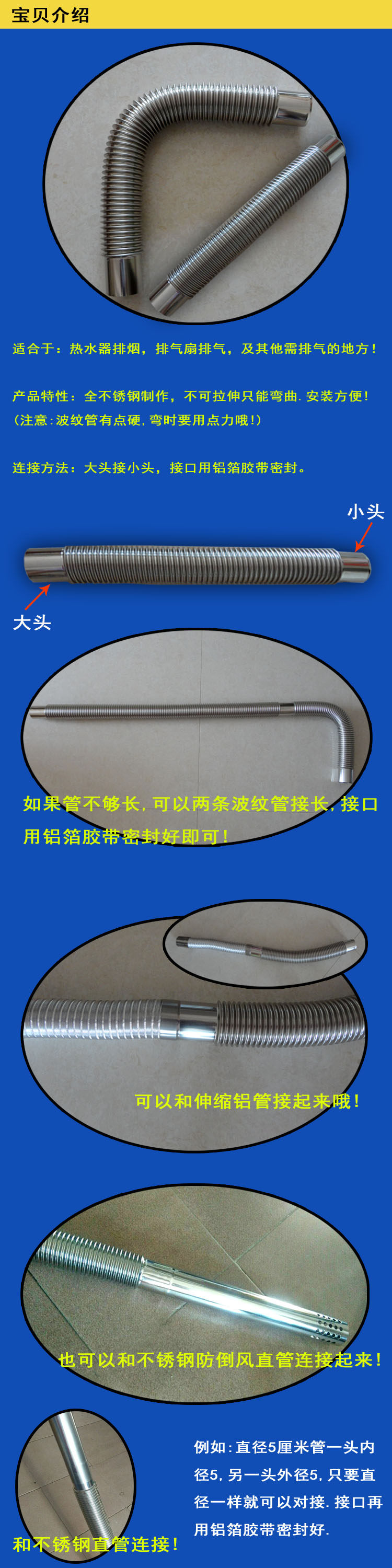 Газовый газовый водонагреватель Дренажная труба пульсация пульсация из нержавеющей стали пробирки выхлопная труба вытянутая труба утолщена и удлиняется 10 см.