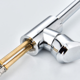 Ночь холодная и холодная вода входная труба входной трубы, подключенные к кухонным водяным трубам на кухне на водопроводной трубе