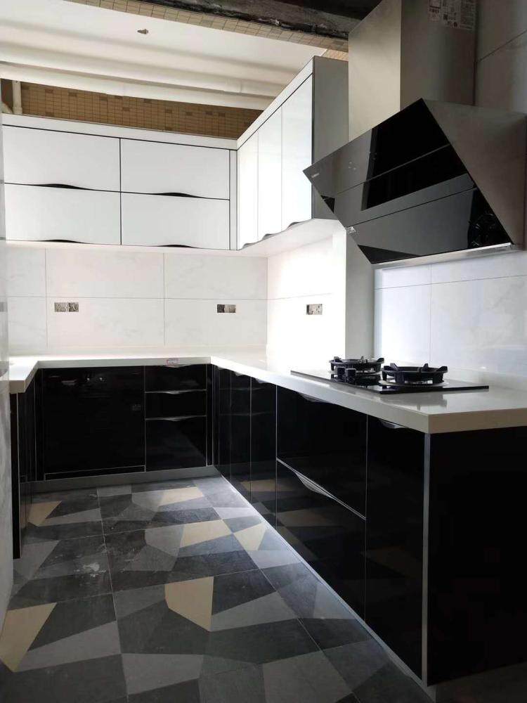 Фучжоу в целом шкаф на индивидуальные стеклянные дверные панель индивидуальная алюминиевая сплава Стиальная приливная рука Yayli Современный кухонный шкаф
