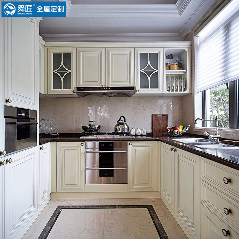 Шкаф Shuncai Castan Custom Kitchen в целом американский стиль сплошной дерево кухонный шкаф для столовой шкаф All -In -Hearing Assembly Quartz Coney Counterpop