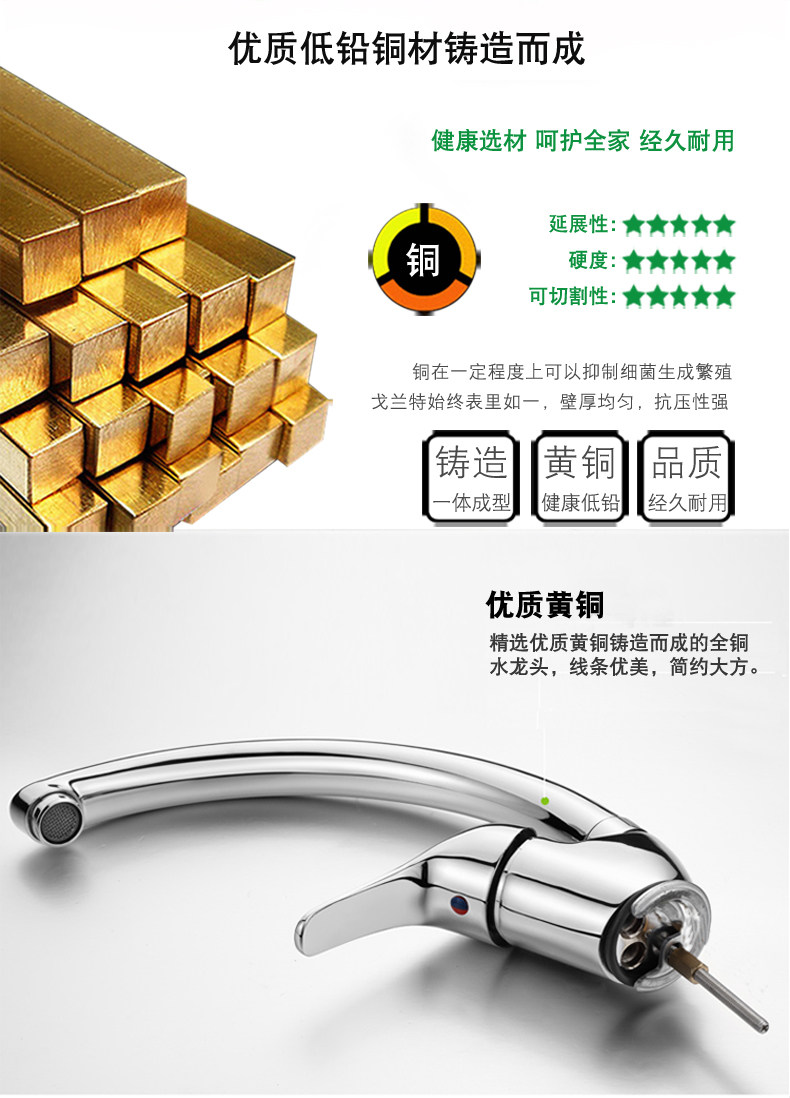 Гранданская кухня Большая холодная и горячая медная медная вода, вращающаяся горячая и горячая вода Большая промывая горшка вода Большие густые шеи