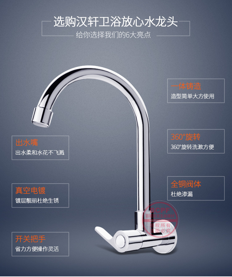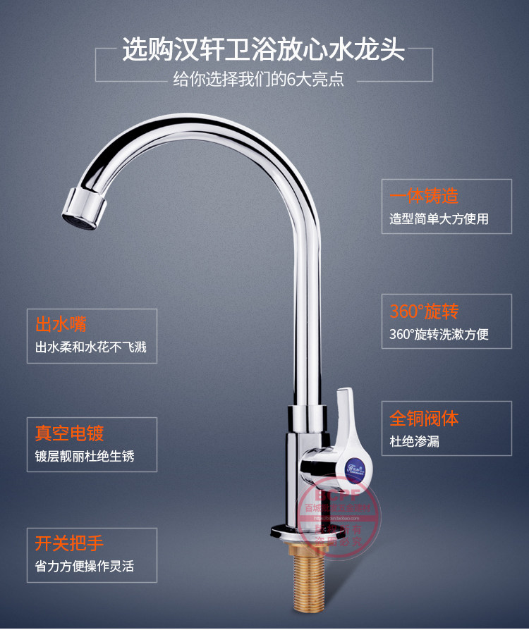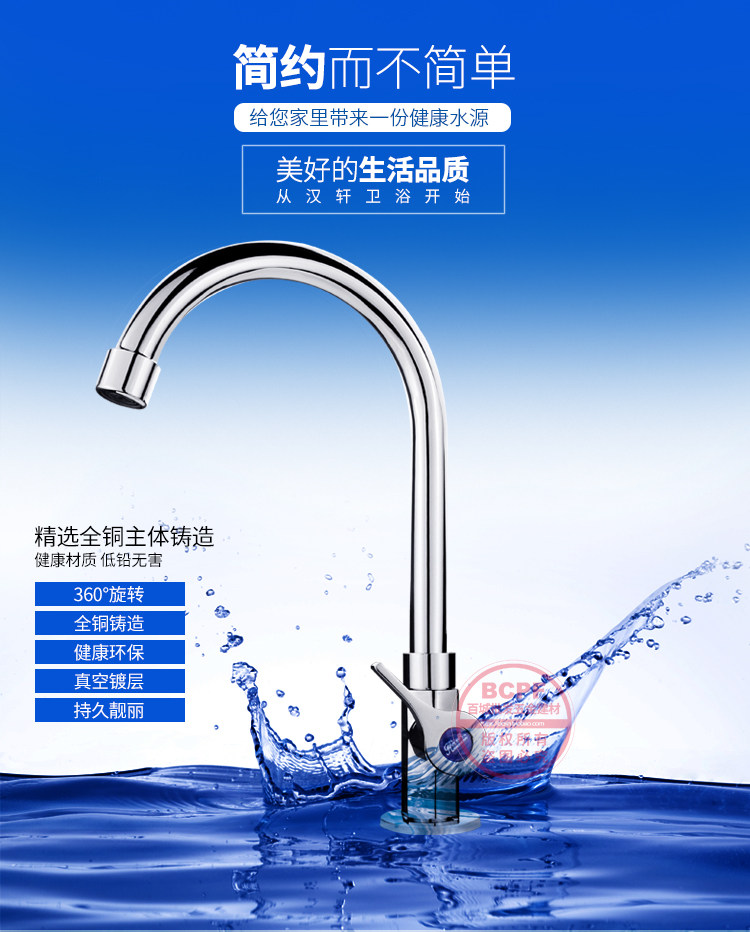 Кухонный водяной кран Одиночный -зажигайте все -все -бронзовое мытье бассейн