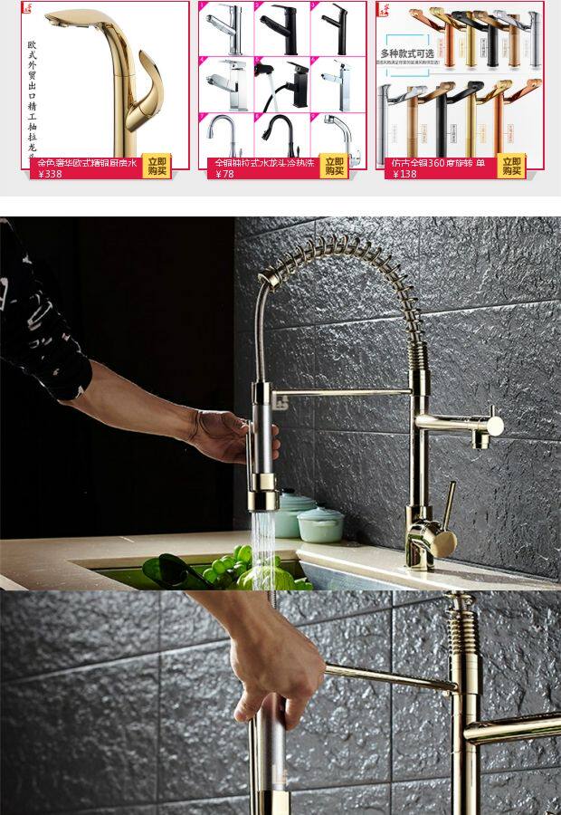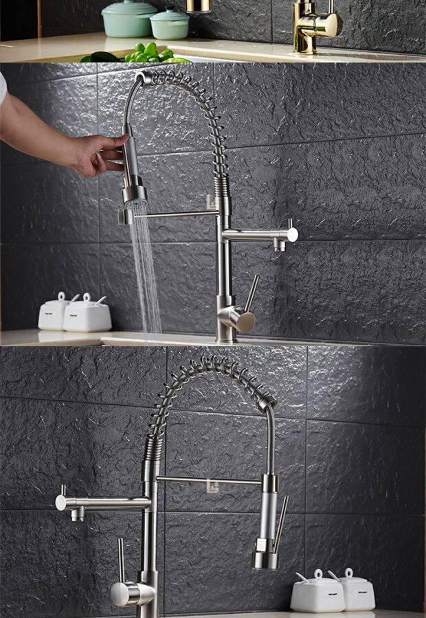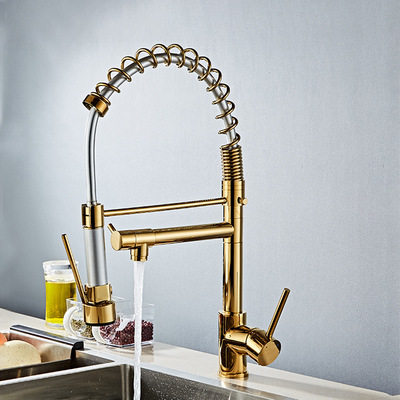Американский высокий давление накачал весенний водный кран кухня горячая и холодная все -функция двойной из воды Большой раковина Золотое кран