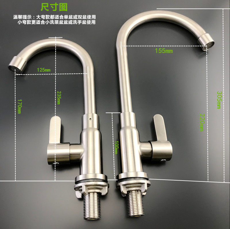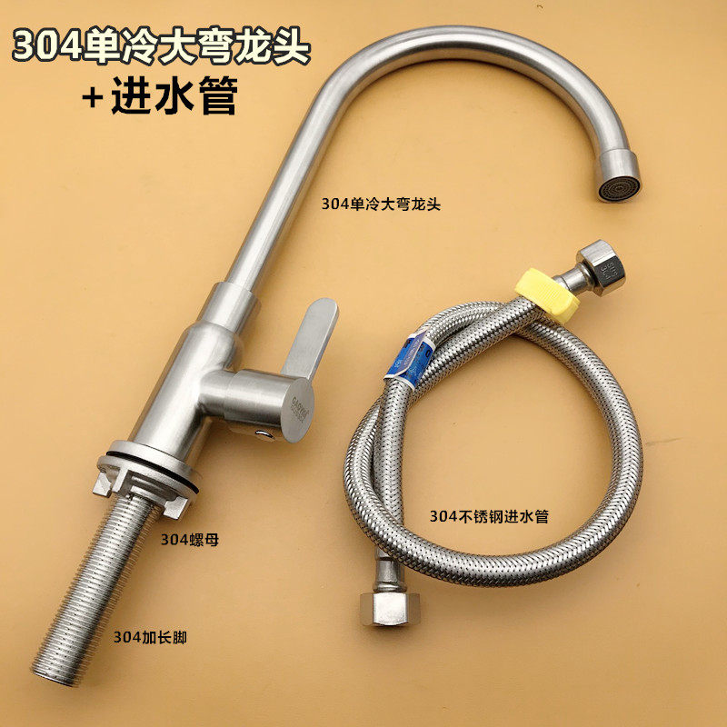 Смеситель для раковины, одиночный холодный смеситель для кухонной раковины из нержавеющей стали 304, бытовой универсальный смеситель для мытья посуды/прачечной бассейна