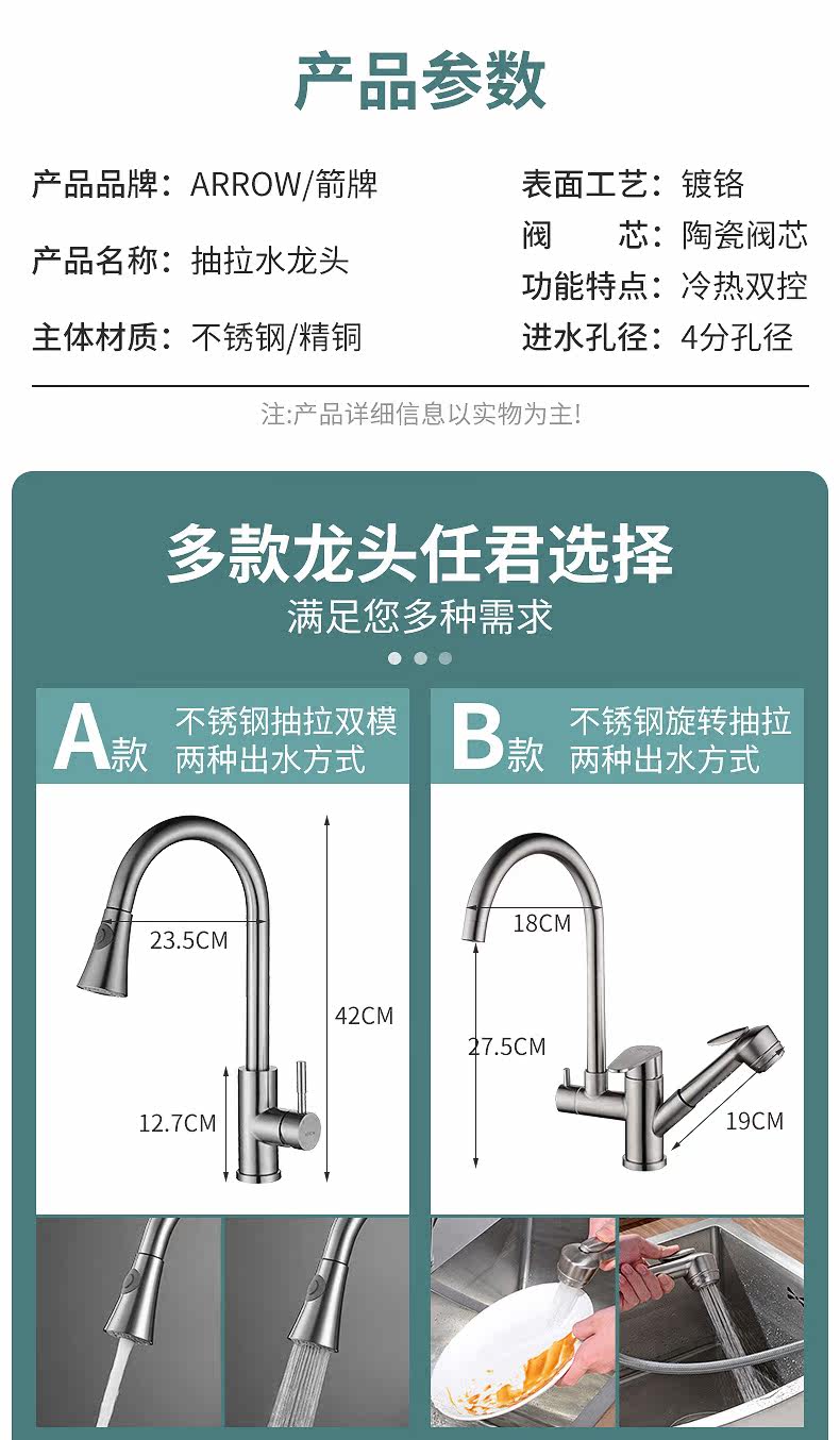 Карточка Wrig Kitchening Pucking Water Faucet Hot and Cold 304 Ошибка из нержавеющей стали для мытья посудомоечная машина для мытья пруд