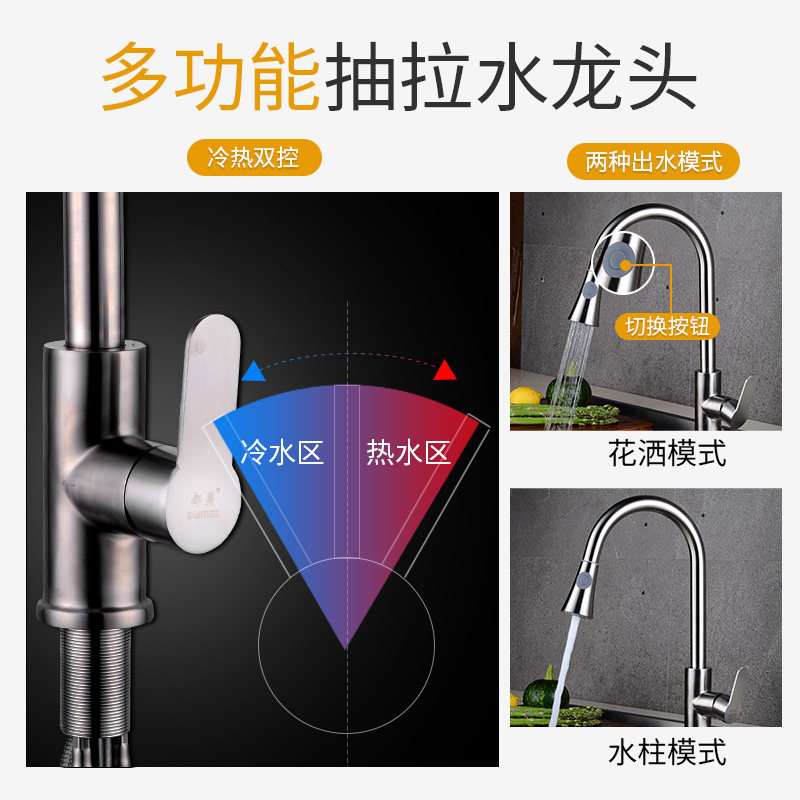 Перекайная водяная смеситель 304 из нержавеющей стали Горячая и холодная кухня для мытья бассейн водяной слот смеситель телескопический шампунь дома