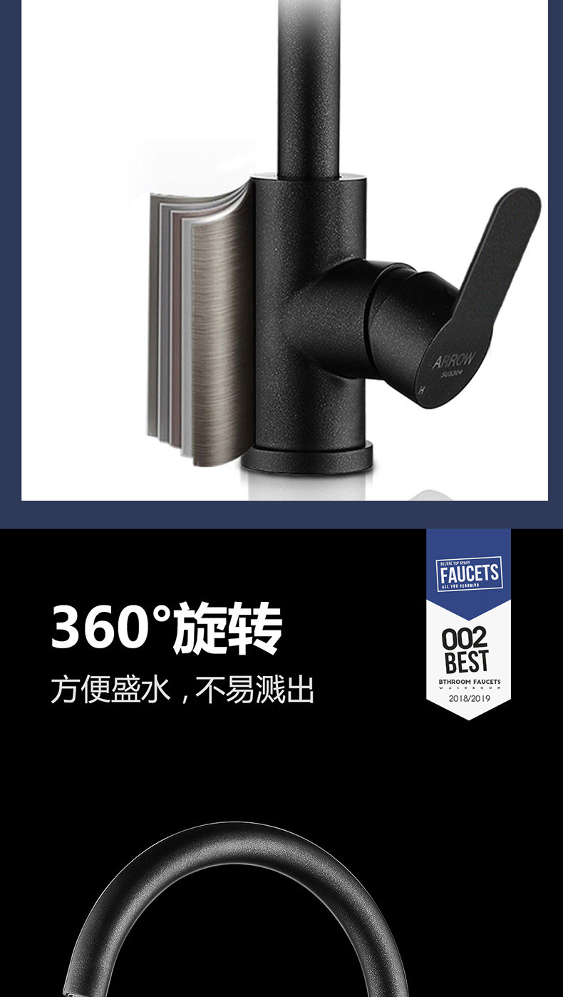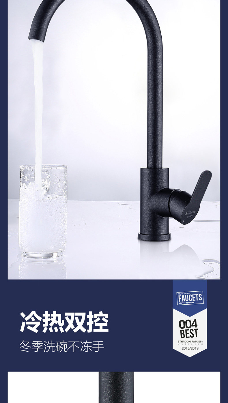 Карточка Wrig Want Black Faucet 304 Клетки из нержавеющей стали. Домохозяйство горячее и холодное кухня для мытья горшок водный кран водой