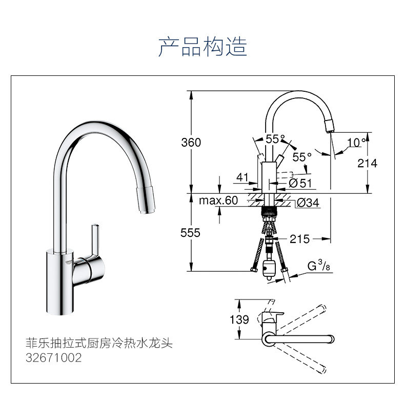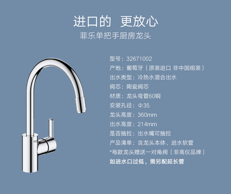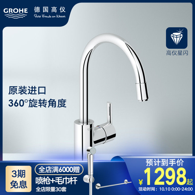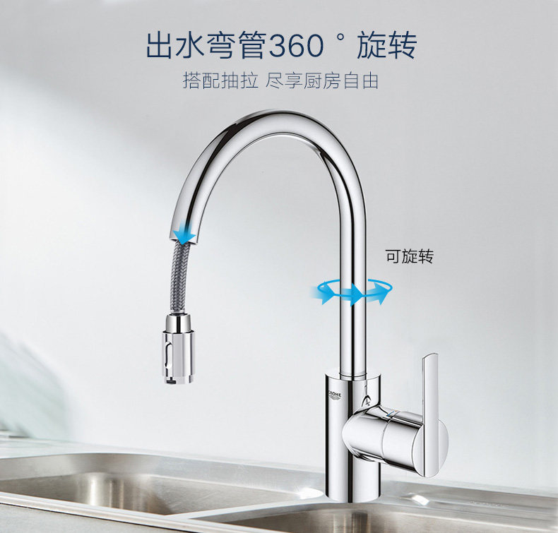 Grohe Germany Gaife Feiti Kitchen, вытаскивающая большие всплески анти -Анти, ретирующие домашнее мытья бассейн