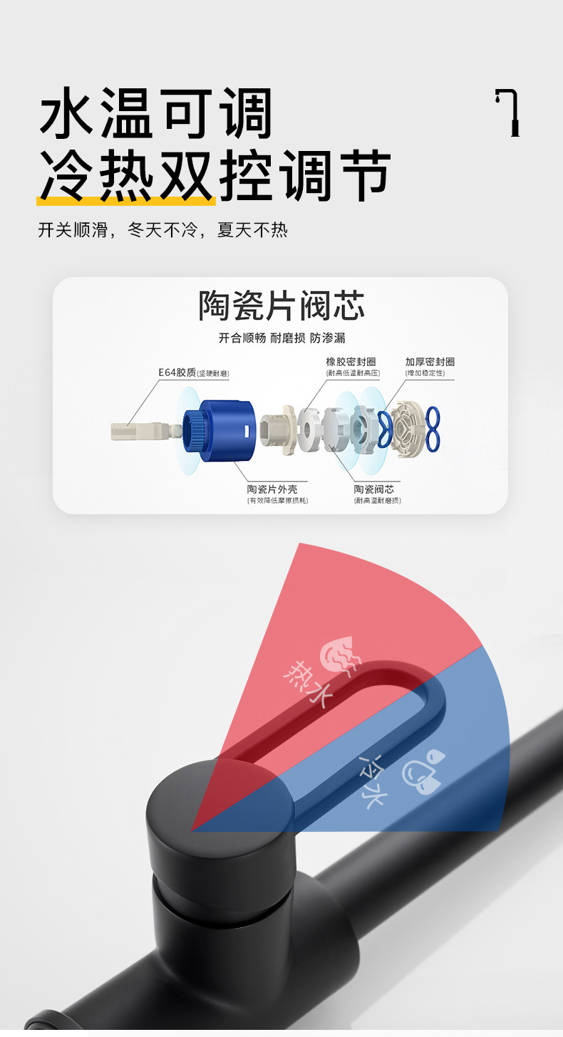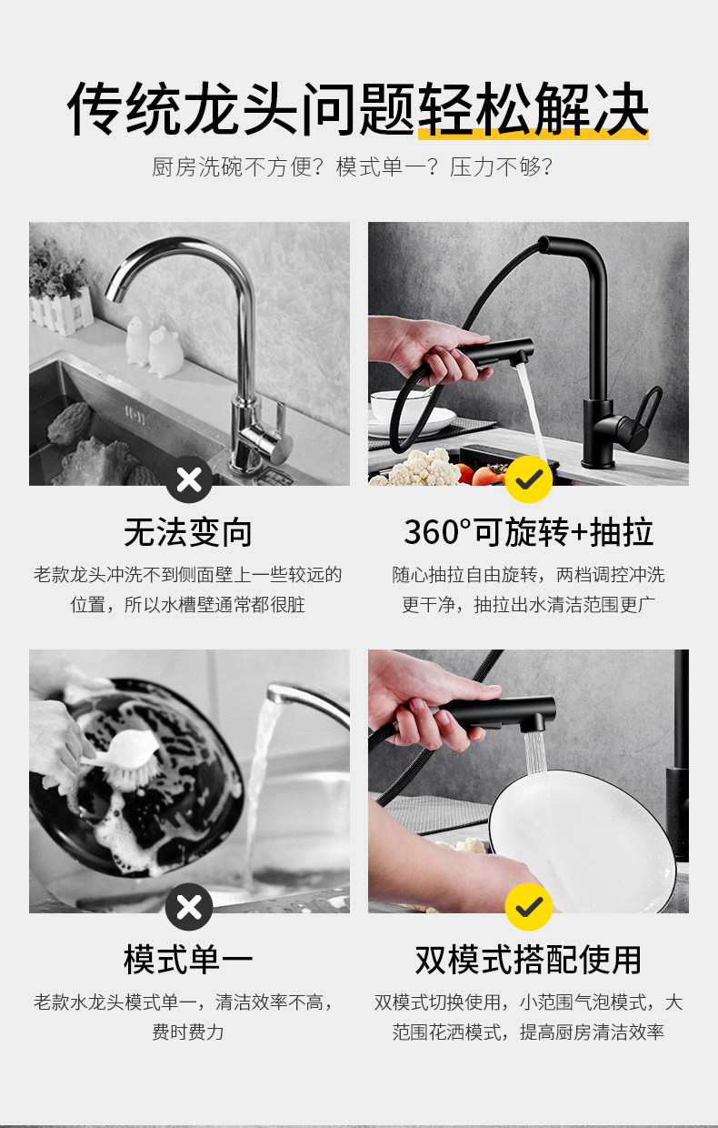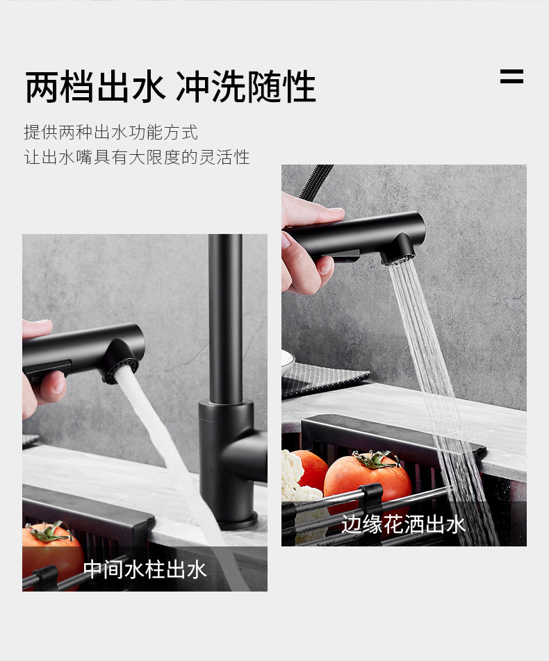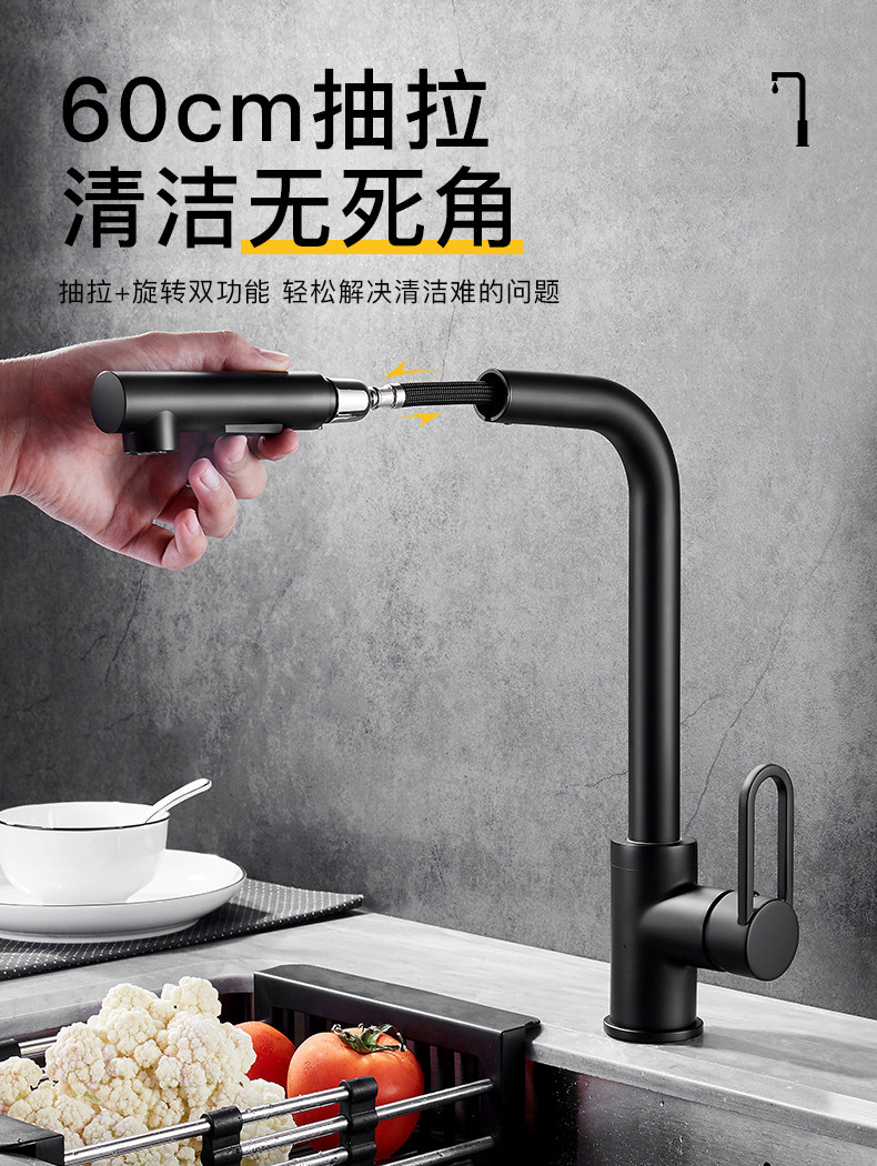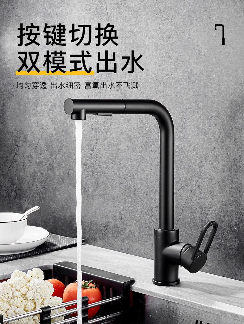 Черная кухонная смесительная смеситель использует скандинавский все -в -бональдский медный насос, горячая и холодная вода, горшок для мытья водой, крем воды из пруда в пруд