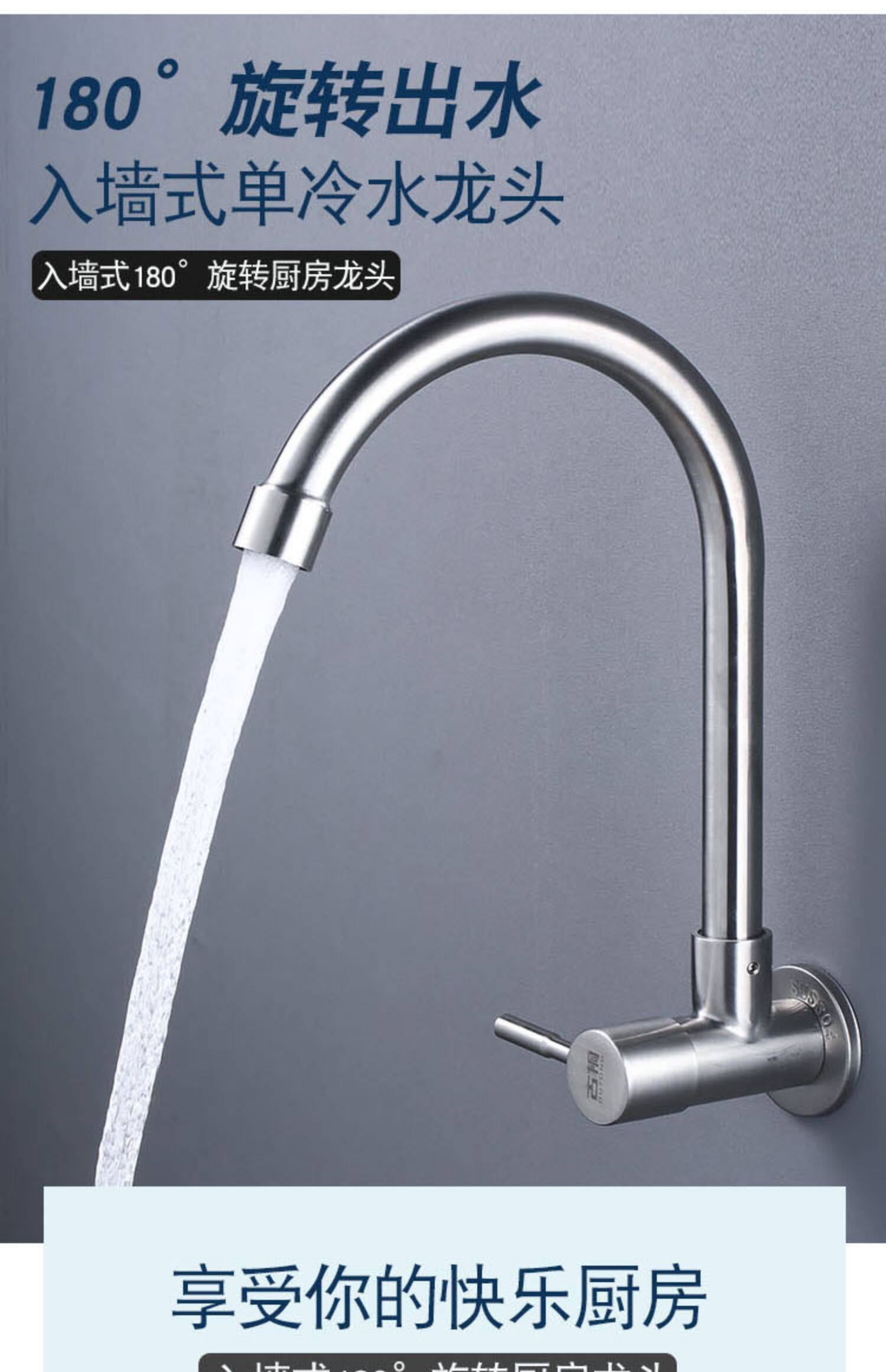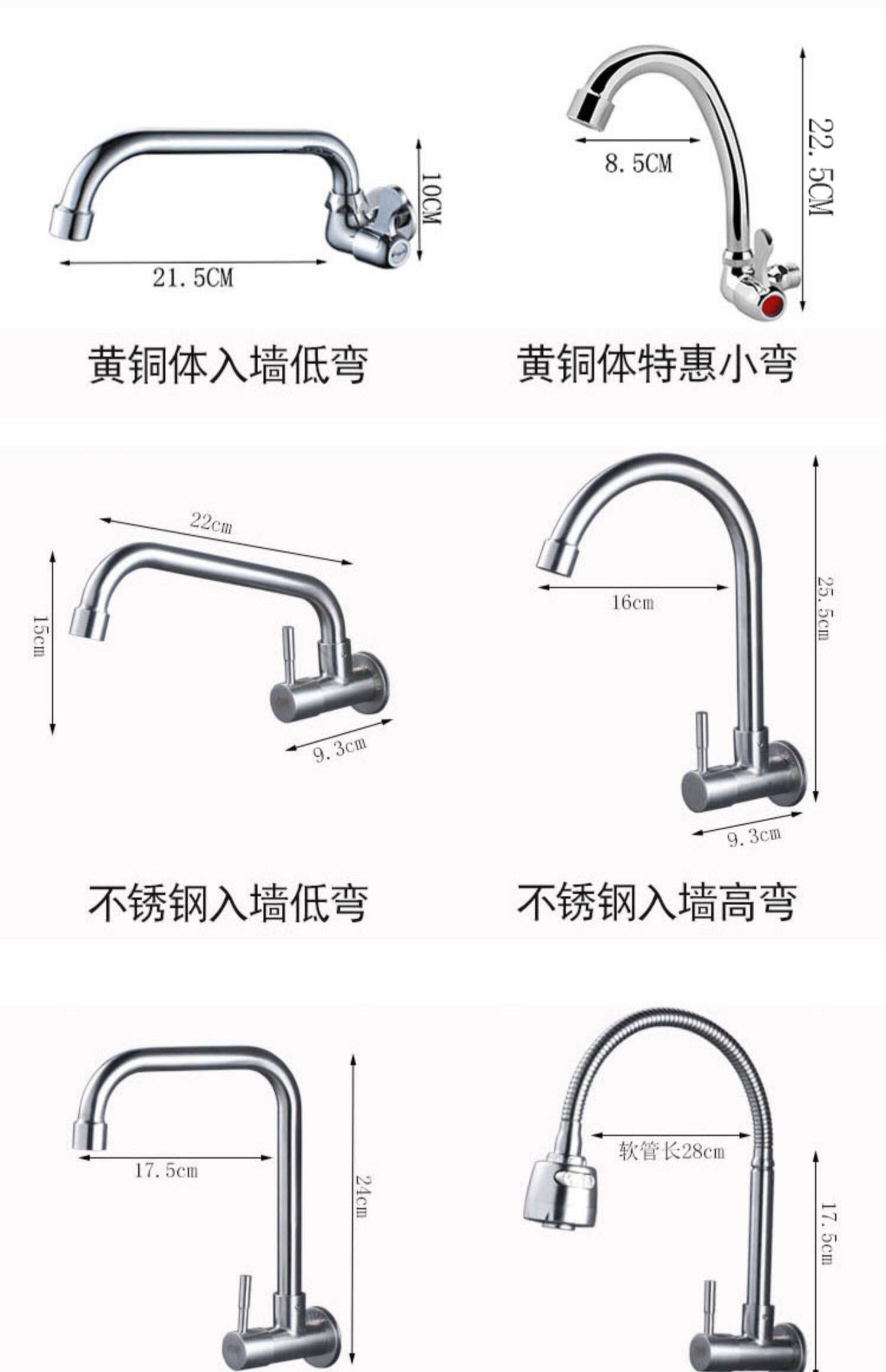 Полный медь выходит на стену кухню одноразовый водяной кран бассейн 304 раковина из нержавеющей стали из стены из стены