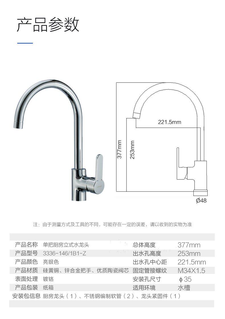 Jiu mu вода большая полная медная водяная клапан кухонная вода с большим горячим промывшим бассейном и крем для холодной воды Анти -сплаш 3336