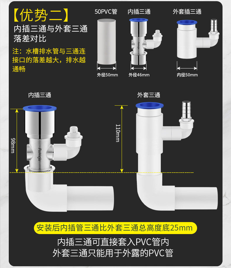 Кухонная раковина посудомоечная машина для очистки канализационных трубопроводов, кухонная стиральная машина дренажная труба две -в одну интегрированную три звенья