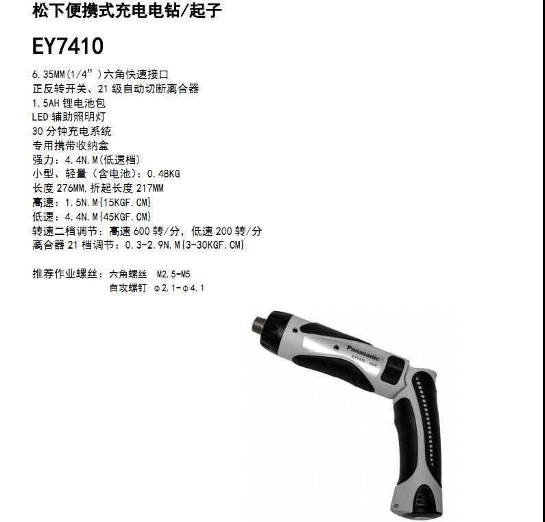 Panasonic EY7411LA1S Зарядка электрическая партия EY7411 Count Function EY9L10