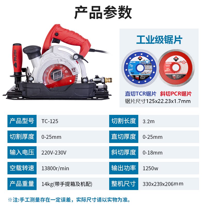 RUBI Ruibi Big Boolite Plate Plate Plate Electric Rutch Machine Тонкая плита Орбита увидела задний угловой портативный косой вырез TC125