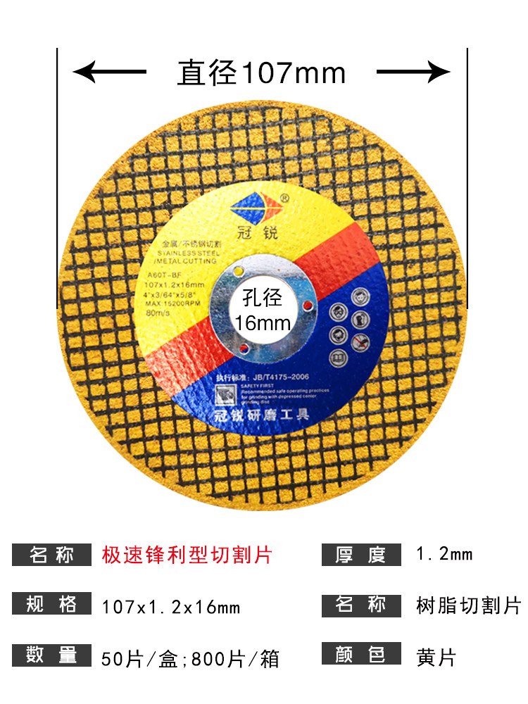Режущая пленка 100 угольная шлифовальная машина песчаная колеса 107 Ультра -тонкий шлифовальный металлический металлический металлический.