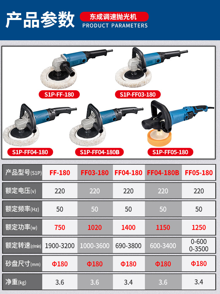 Регуляция скорости Dongcheng Polishing Machine S1P-FF05-180 Автомобильная красавица восковая машина полировка шлифовальной машины Электрический инструмент